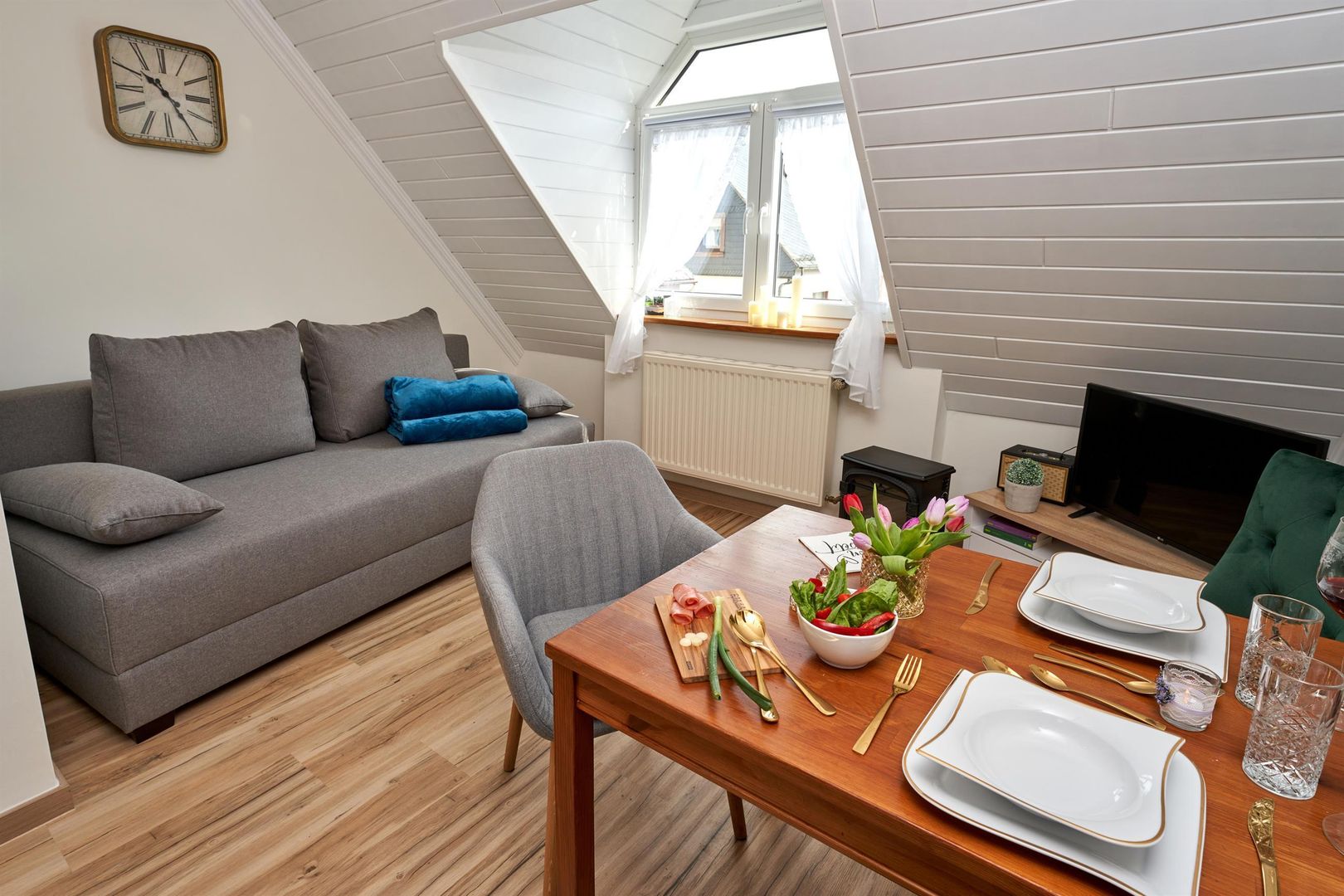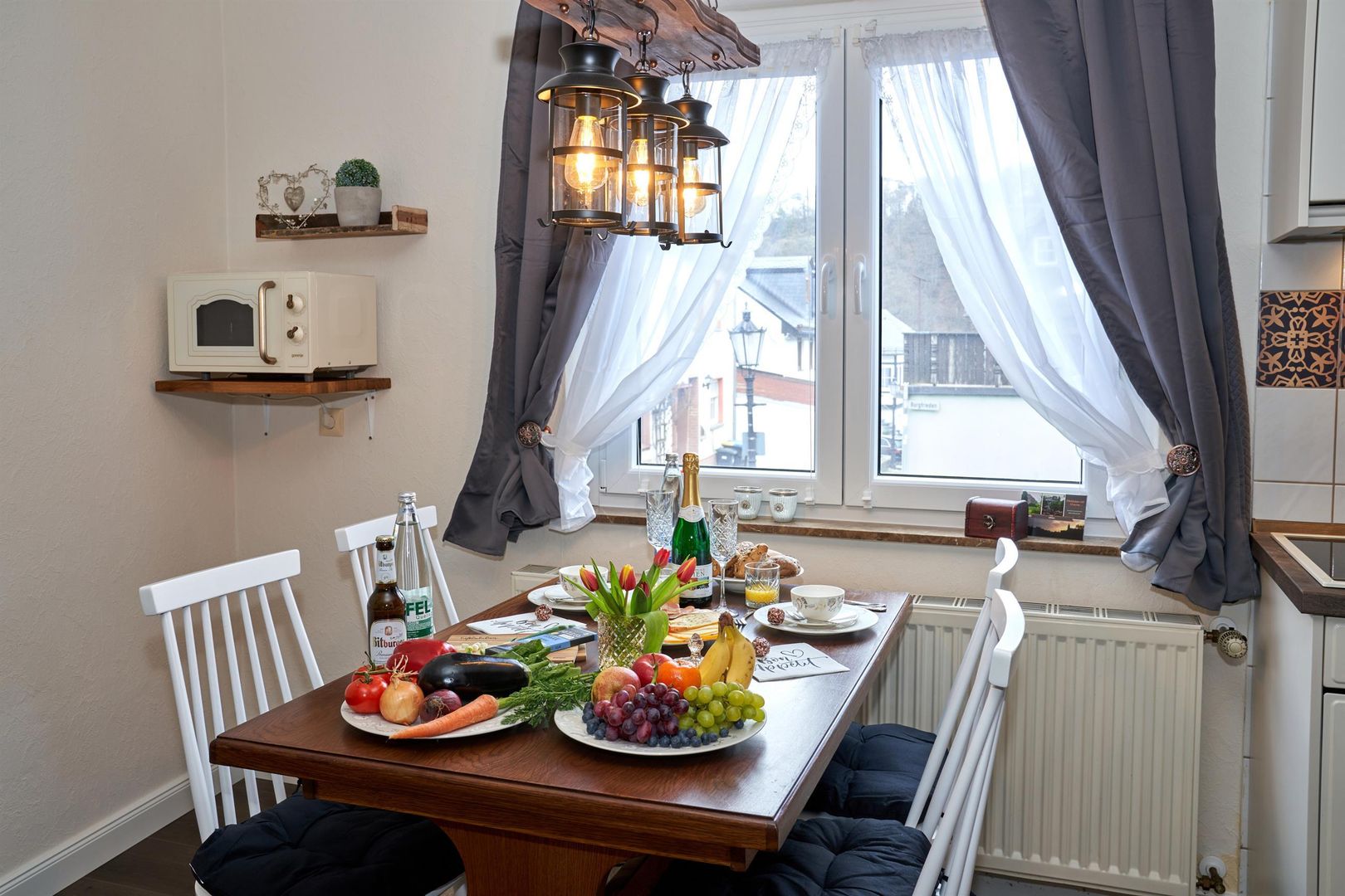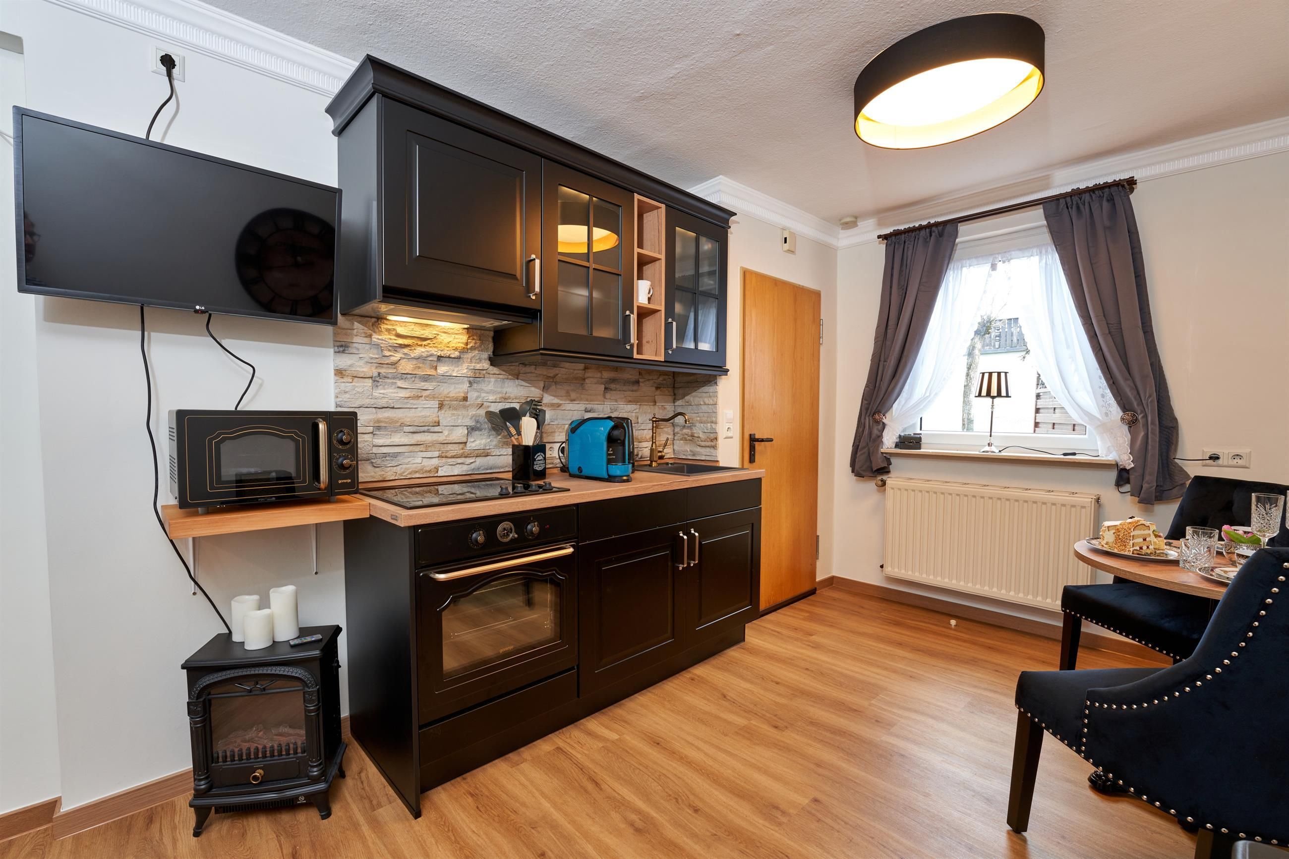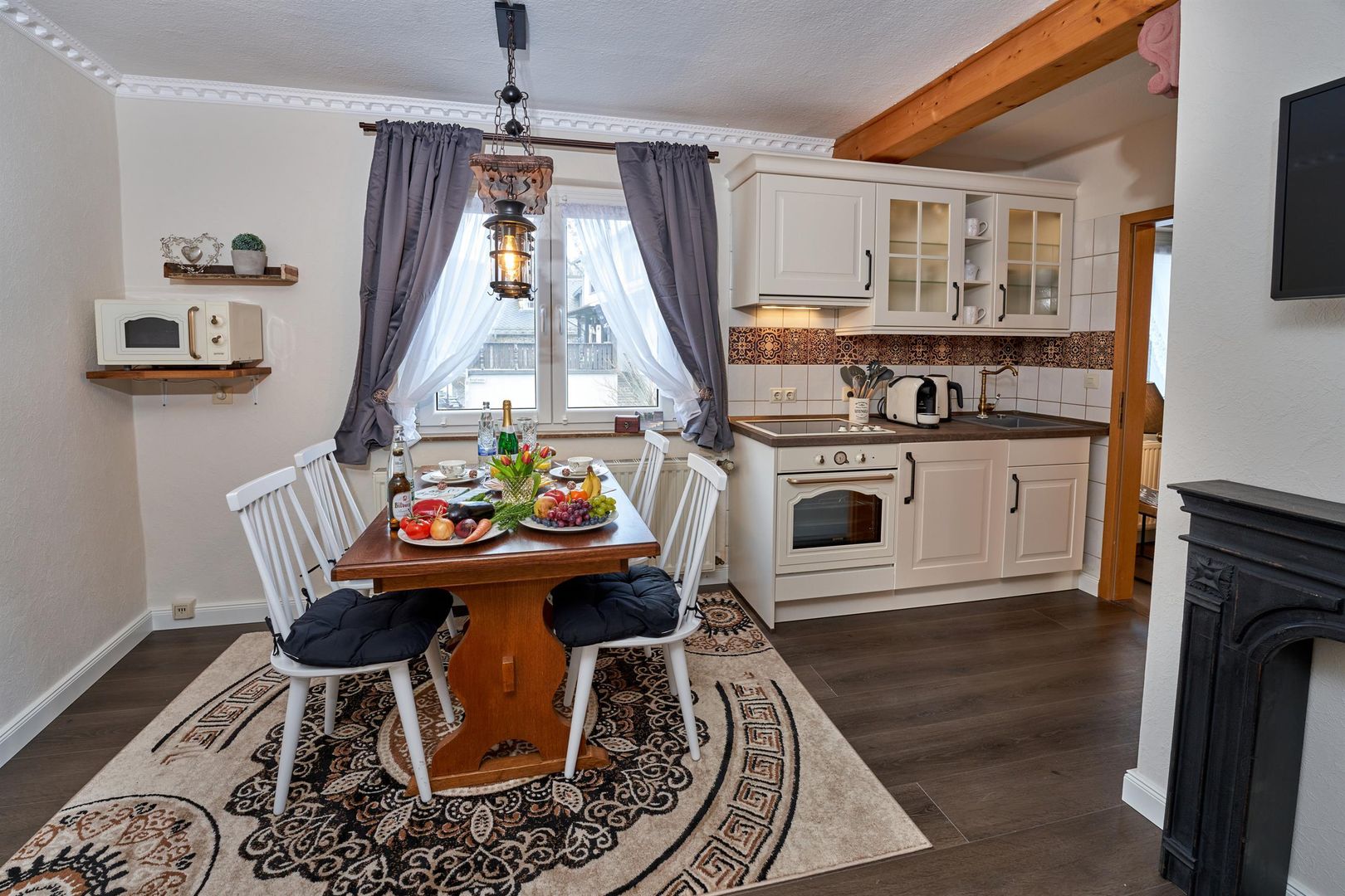 Enjoy your breakfast in the light-flooded kitchen-cum-living-room with a view over the roofs to fields, forests and meadows, end the day with a barbecue in the courtyard or treat yourself to a few relaxing, cozy hours with games or reading in the cozy living room.
