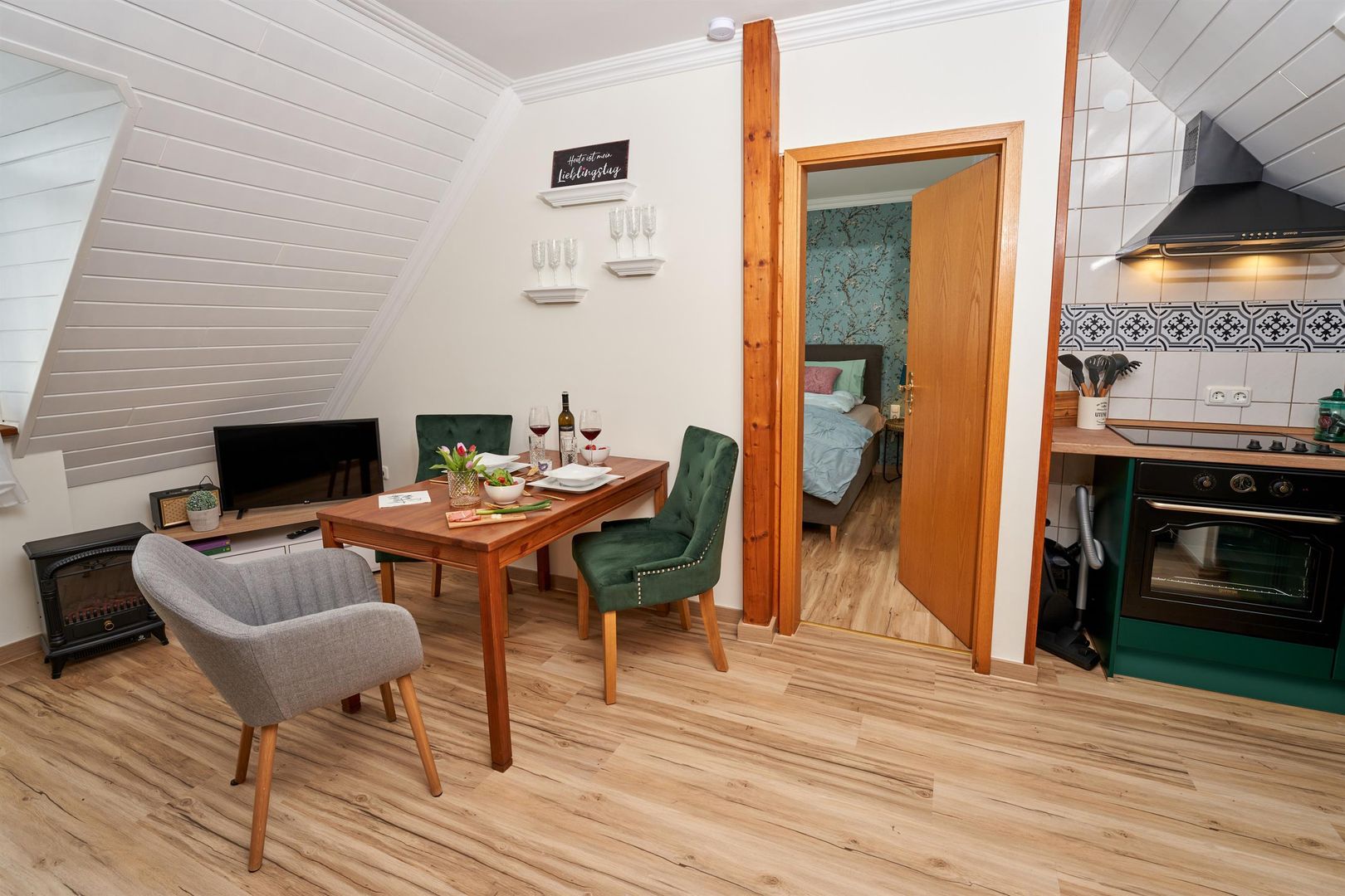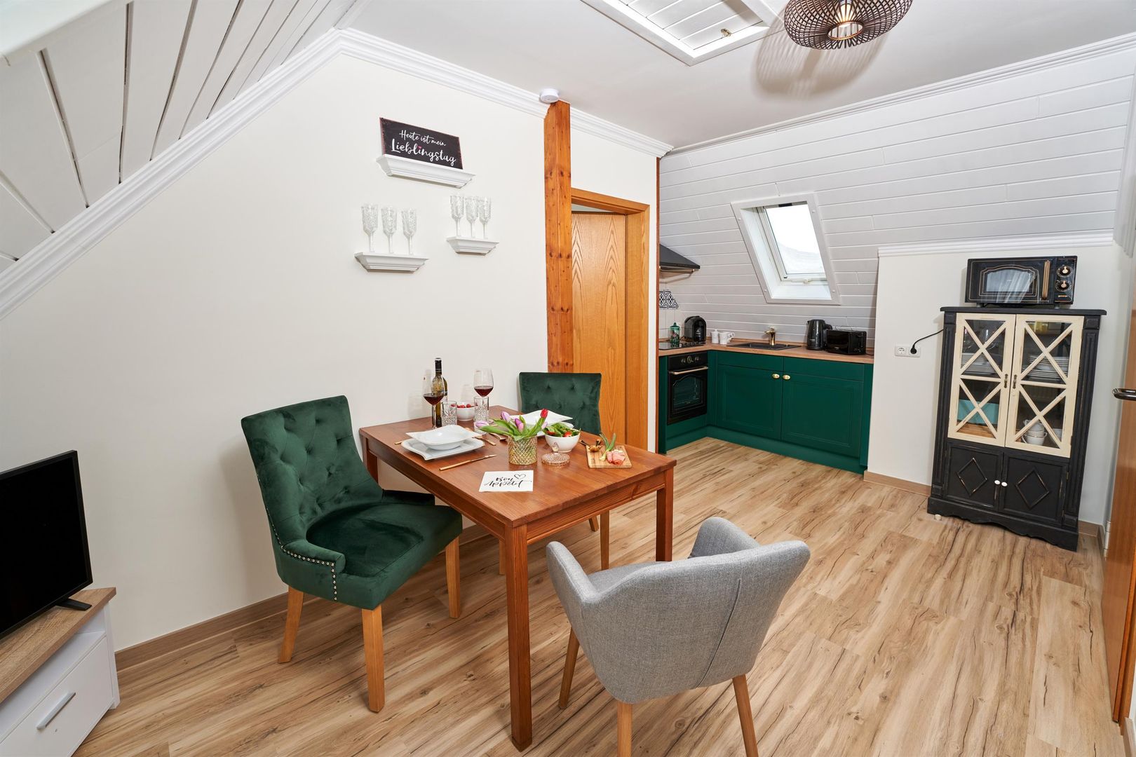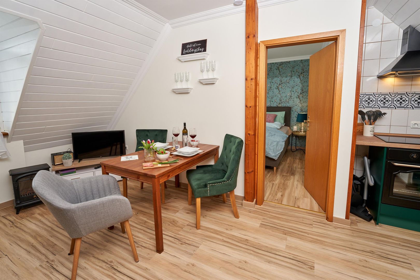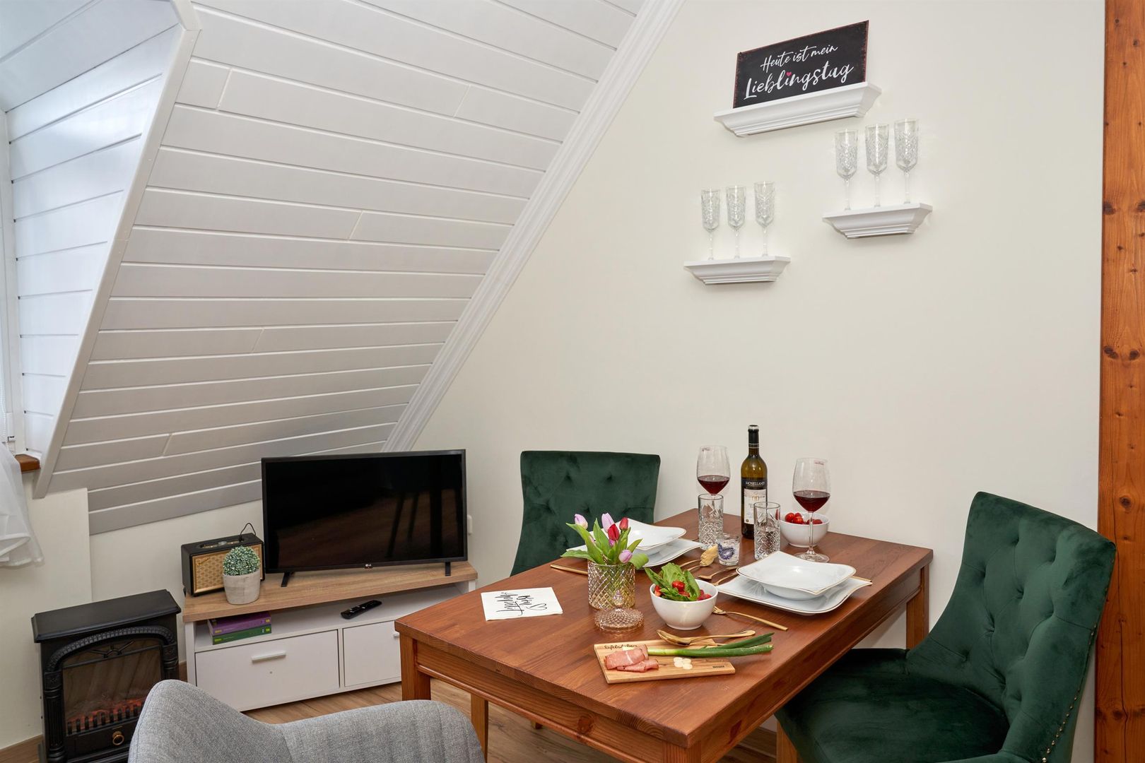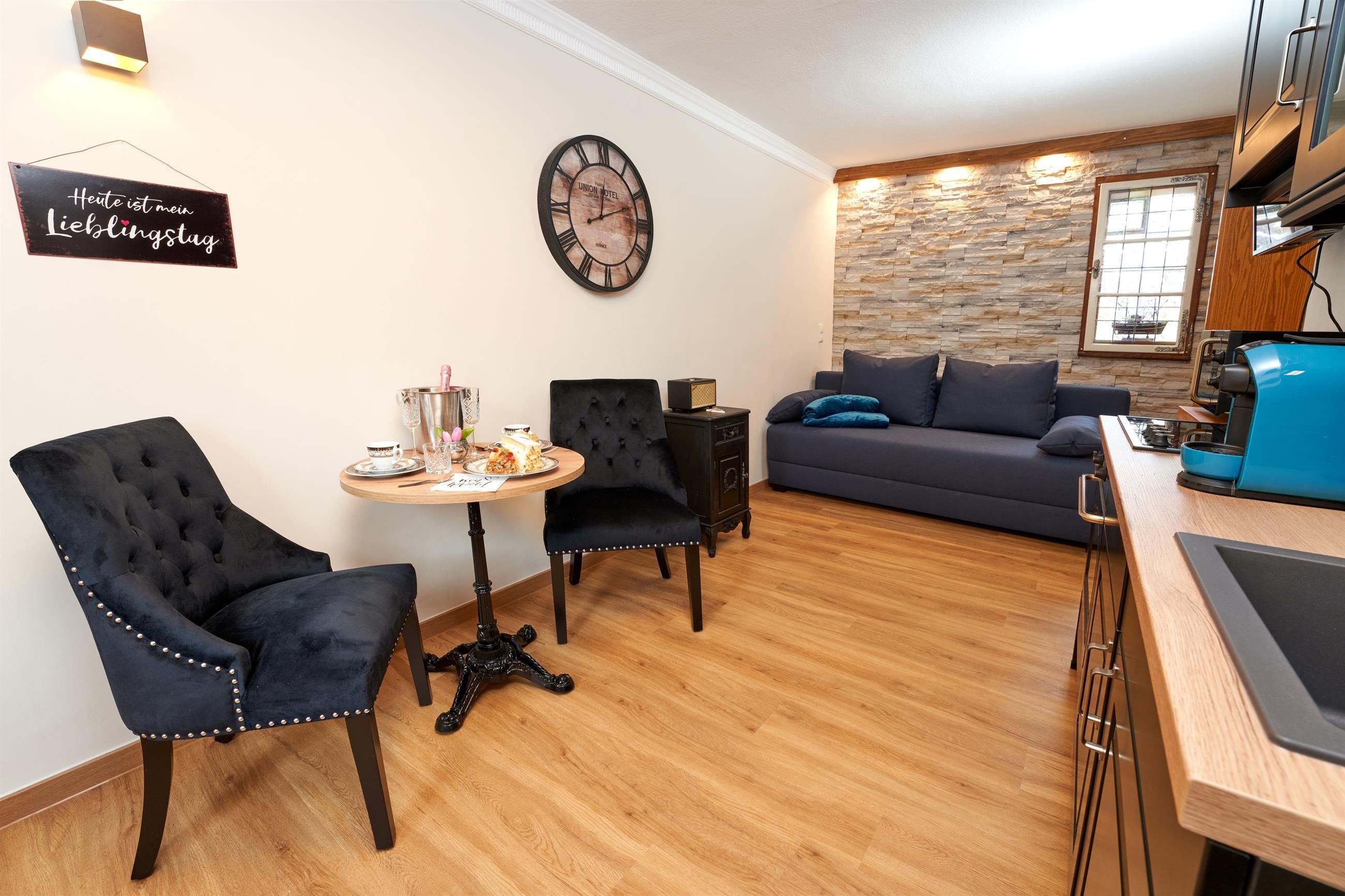 You either live in the maar parlor, directly under the roof with a view of the maar from the dormer windows, or in the castle parlor below, where you can feel the charm of the knights in a comfortable, rustic interior or in the small studio, the gallery parlor, which is on the ground floor and has a very special flair thanks to its rear wall.