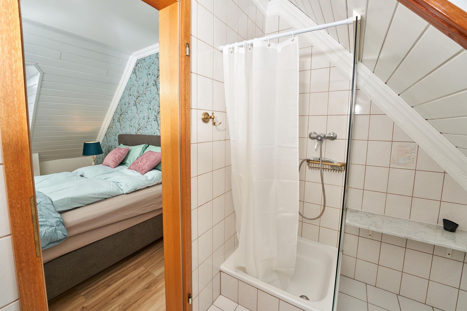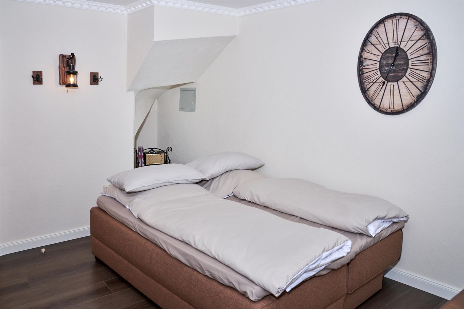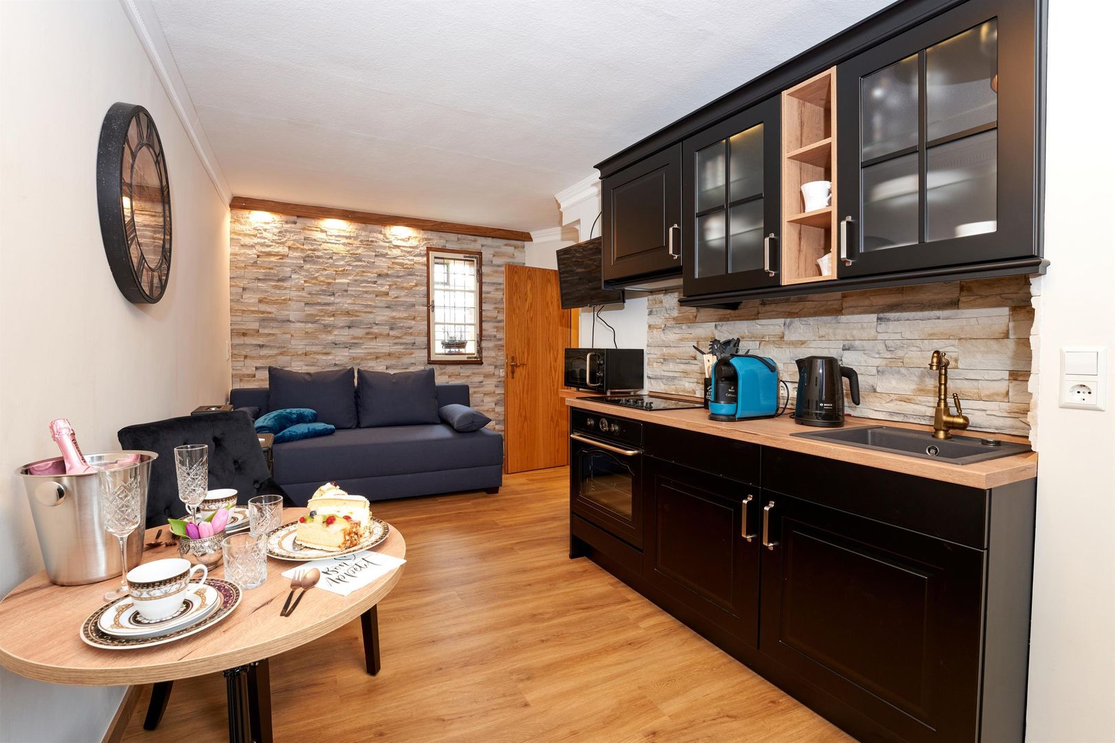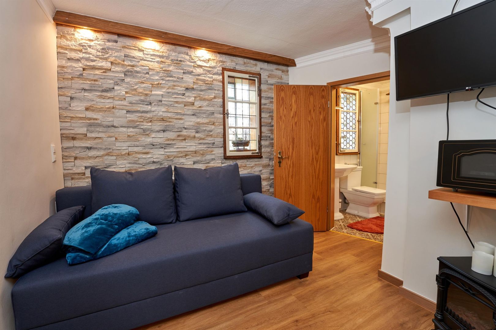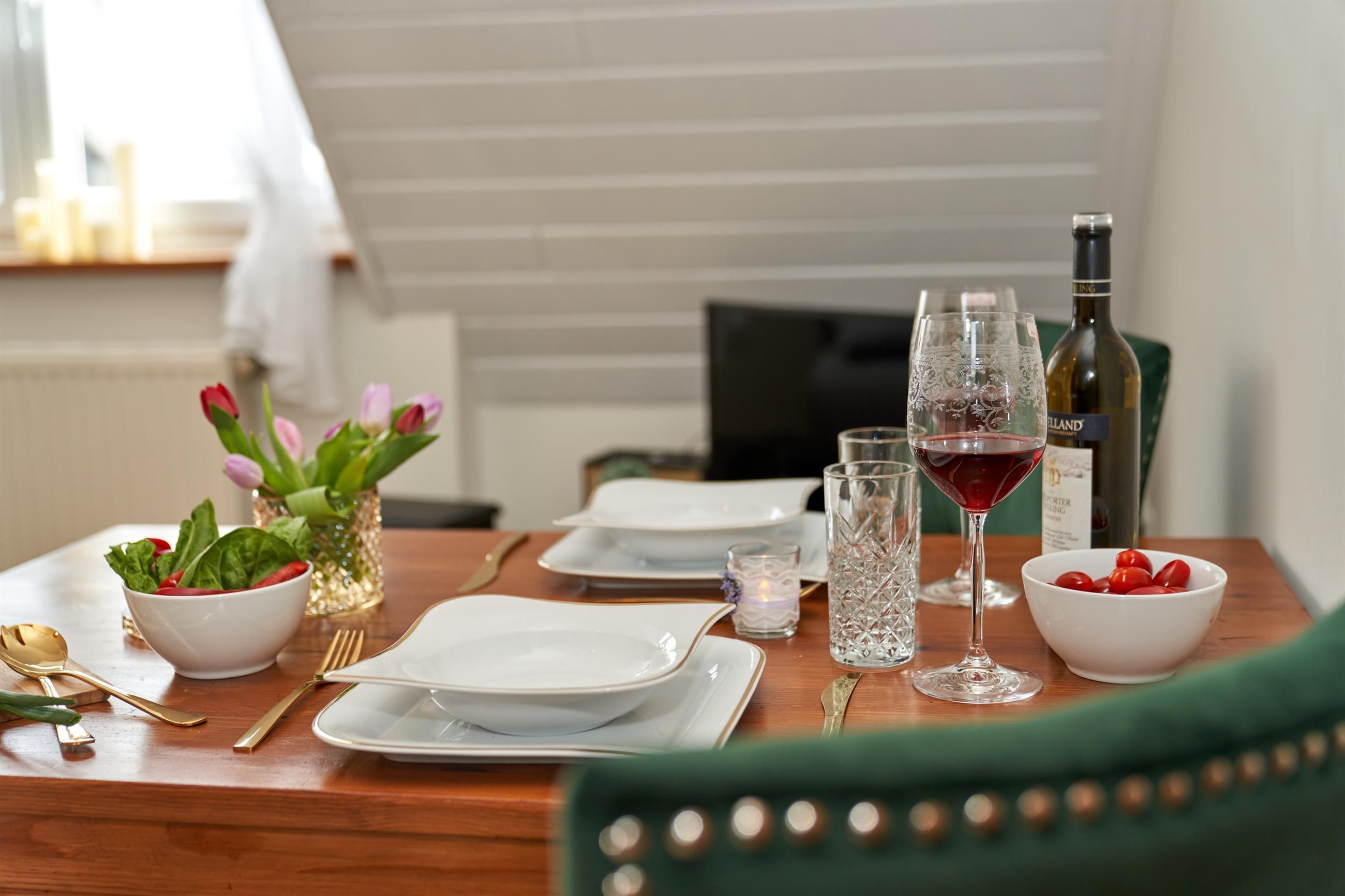 You either live in the maar parlor, directly under the roof with a view of the maar from the dormer windows, or in the castle parlor below, where you can feel the charm of the knights in a comfortable, rustic interior or in the small studio, the gallery parlor, which is on the ground floor and has a very special flair thanks to its rear wall.