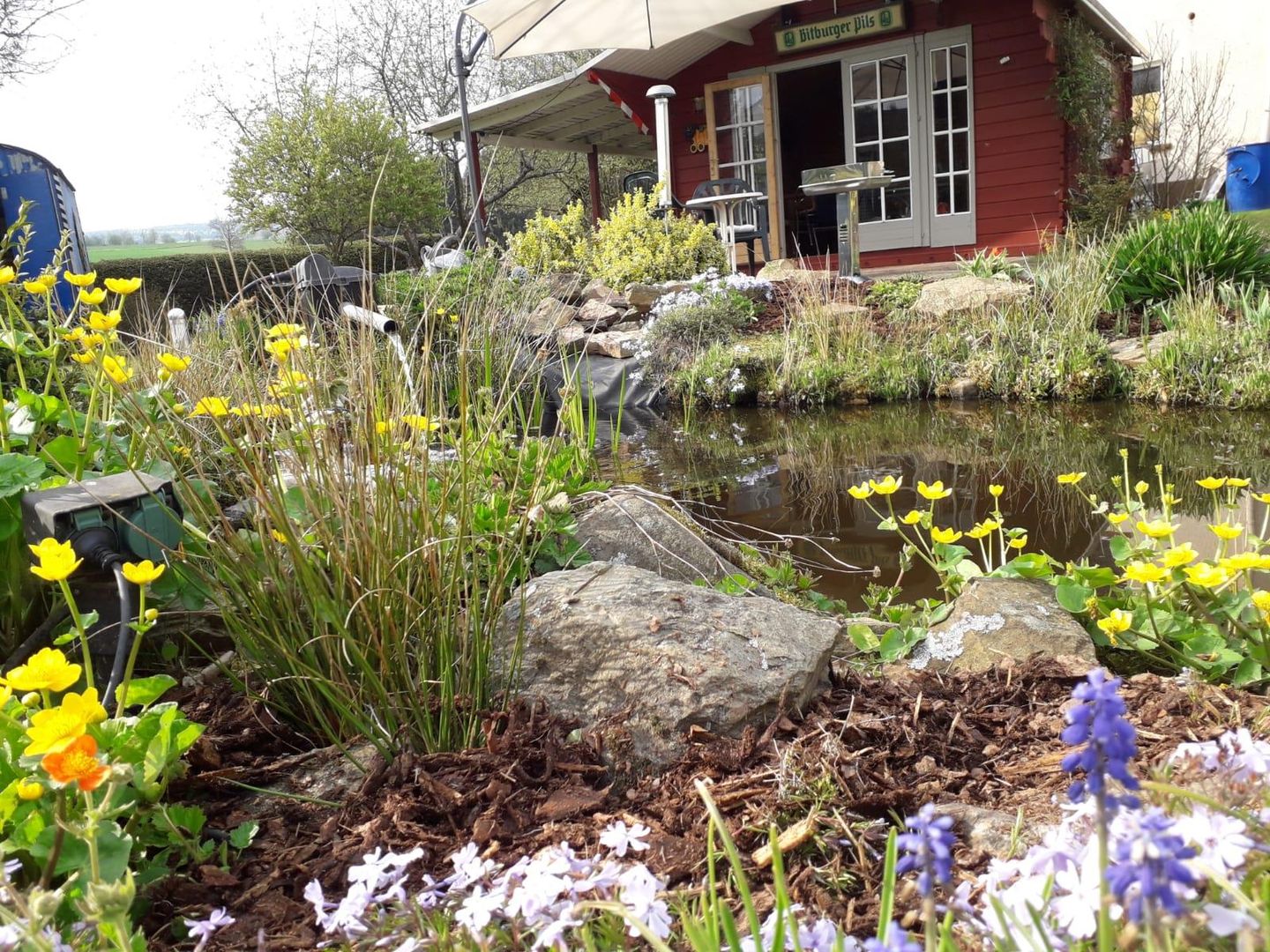 A garden house with barbecue and small pond is available for cozy hours outdoors. There is also lockable storage space for bicycles and a car parking space right next to the house. There is a nearby playground for children.