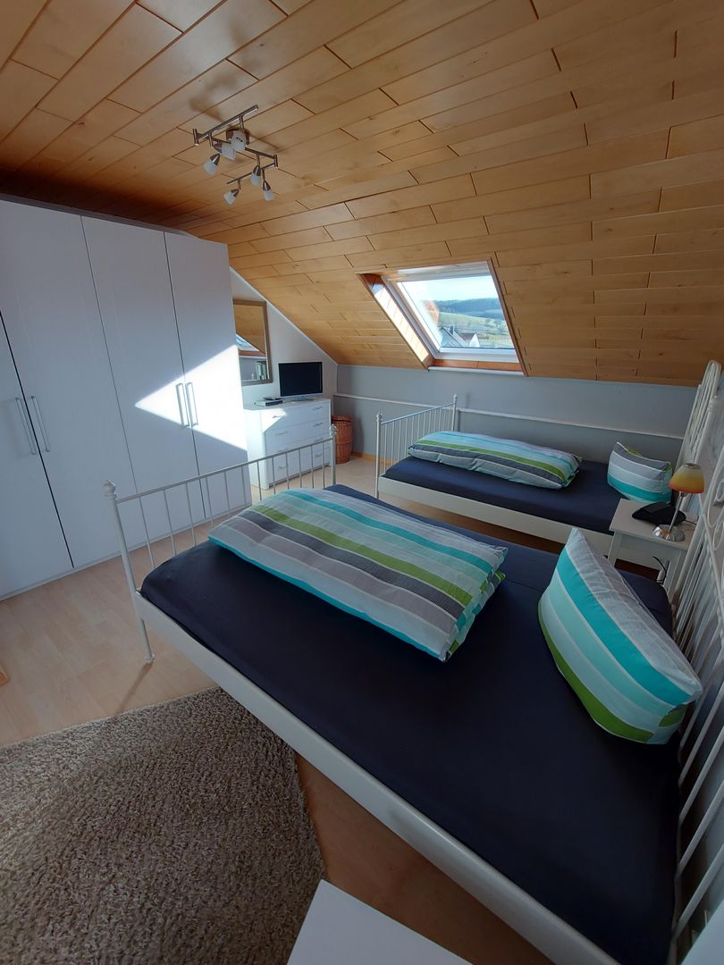 It is a lovingly furnished attic apartment with space for up to 5 people, all bedrooms are equipped with a flat screen TV.