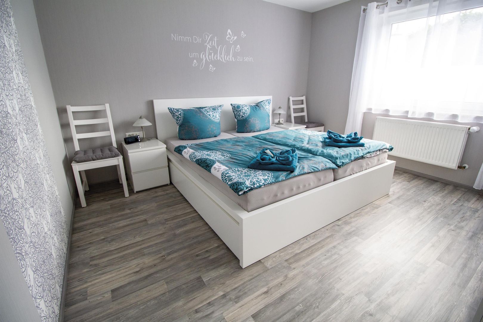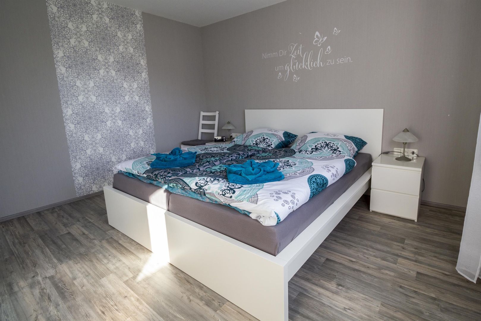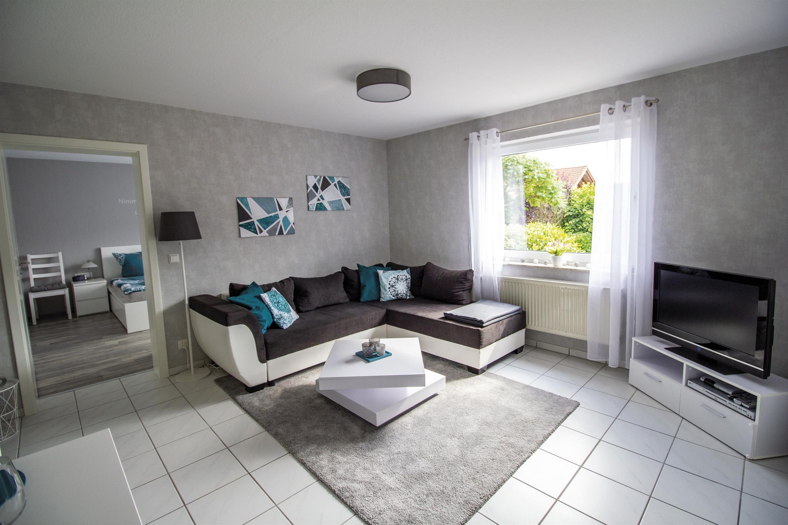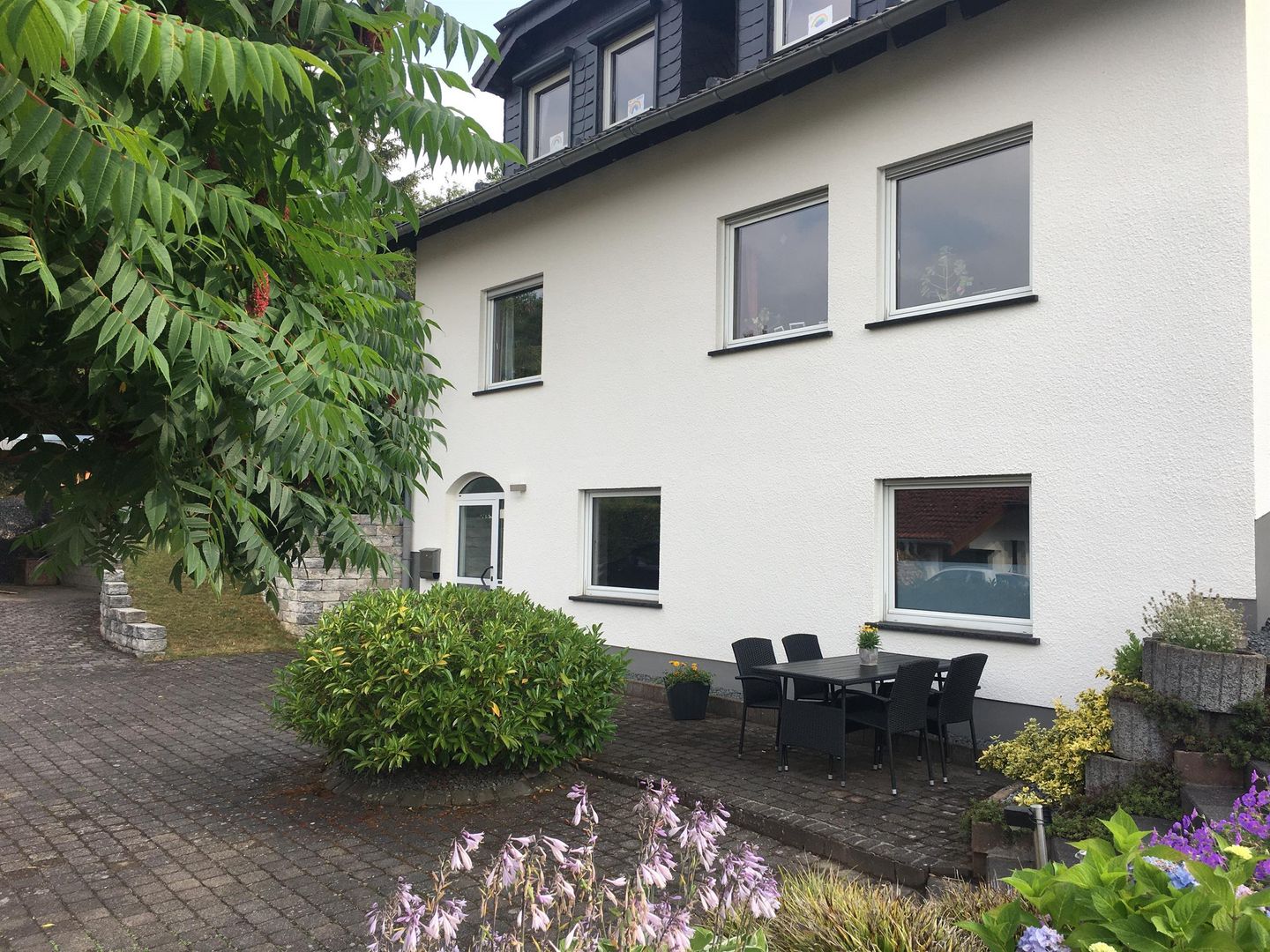 Our holiday flat has been completely renovated. This contains a new bathroom as well as new furniture and the flat is ready for occupancy in October 2020 at the earliest. The flat is part of our one-family house, it is spacious with its 55 sqm and it offers enough space for two people. Our house is the last one in a calm dead-end street and the flat is at ground level with a separate entrance. The parking lot in front of the house is to your disposal.