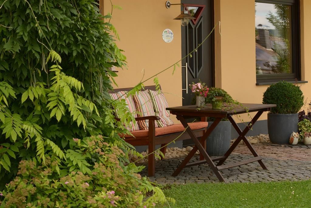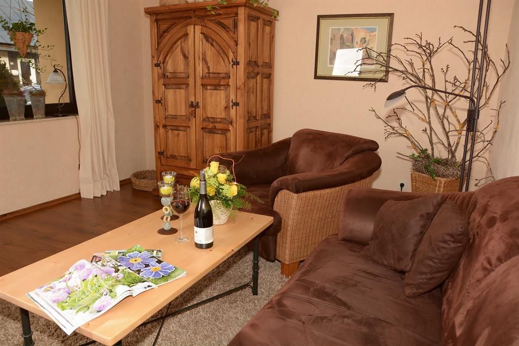 The lovingly furnished country-style, approx. 60 sqm non-smoking apartment with underfloor heating comprises two rooms, a kitchen with dining area, bathroom and hallway. The fitted kitchen is fully equipped for two people. From here you have a beautiful view of the nearby Ernstberg. Outside, there are seating and lounging areas where you can have breakfast or enjoy the evening sun with a nice glass of Moselle wine. Please also note our special service offer for you!