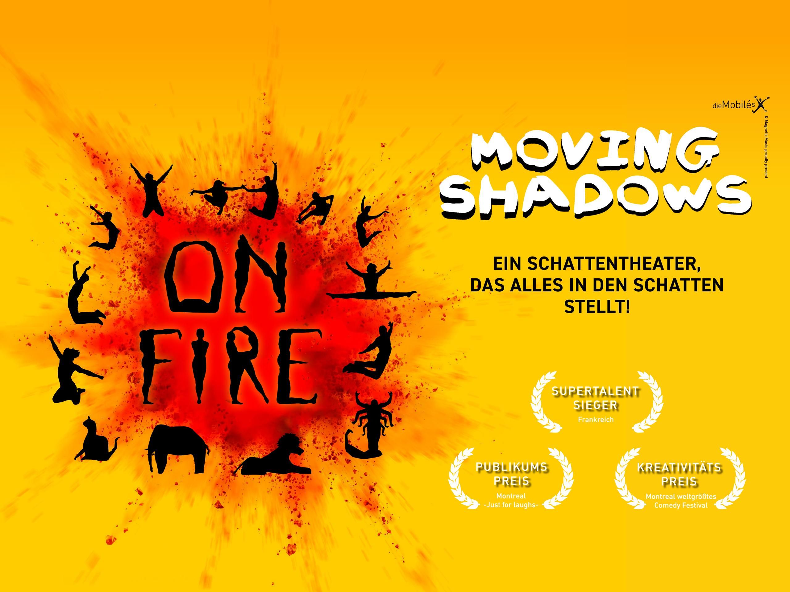 Die Moving Shadows faszinieren seit ihrer Gründung mit ihrer einzigartigen Kunstform. Zu den Höhepunkten ihrer Karriere zählt der Gewinn des französischen Supertalents in Paris. Beim renommierten Comedy-Festival „Juste pour rire“ in Montreal schrieben sie Geschichte, indem sie als erste Gruppe in 40 Jahren gleich zwei der begehrten Auszeichnungen gewannen: den Kreativitätspreis und den Publikumspreis „Sieger der Herzen“. Auch im deutschsprachigen Fernsehen sind die Moving Shadows regelmäßig präsent. Ihre TV-Auftritte geben einen Vorgeschmack auf die beeindruckenden Live-Shows, die weltweit Zuschauer begeistern. Erleben Sie die „World's Best Shadowshow“ – faszinierend, dynamisch und unvergleichlich! Die Moving Shadows sind ON FIRE!