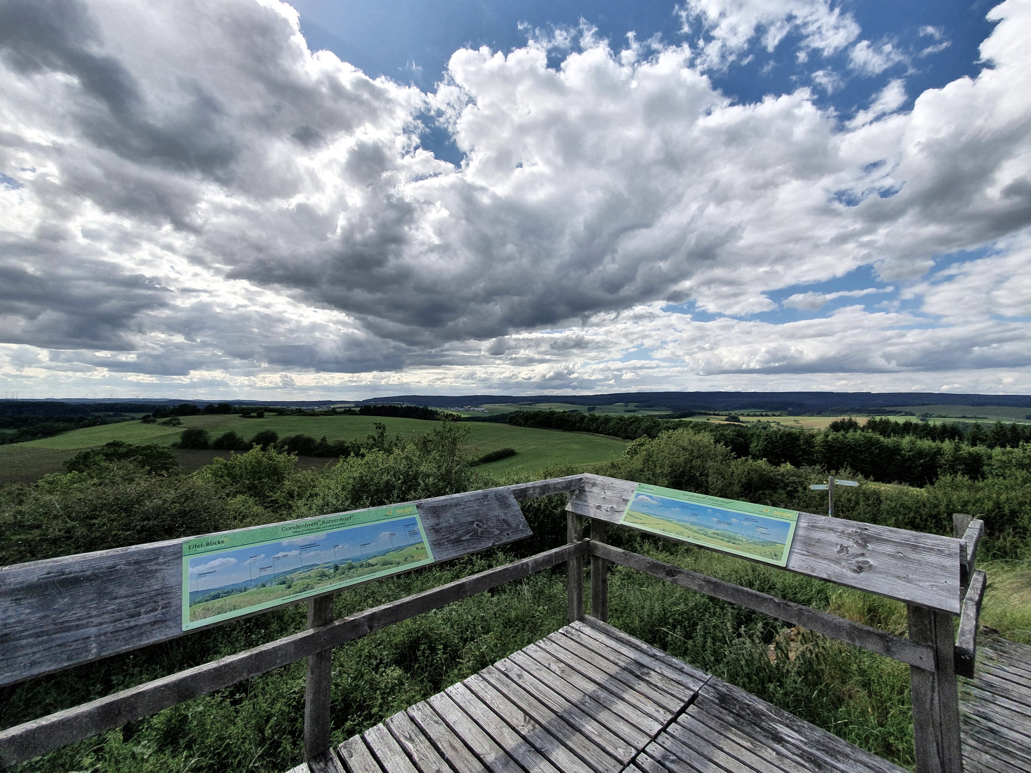 Sur une plate-forme avec vue panoramique, construite sur un bunker détruit du mur ouest, on peut voir toute la crête du Schneifel, les hauts plateaux de l'Islek et le Prümer Kalkmulde.
