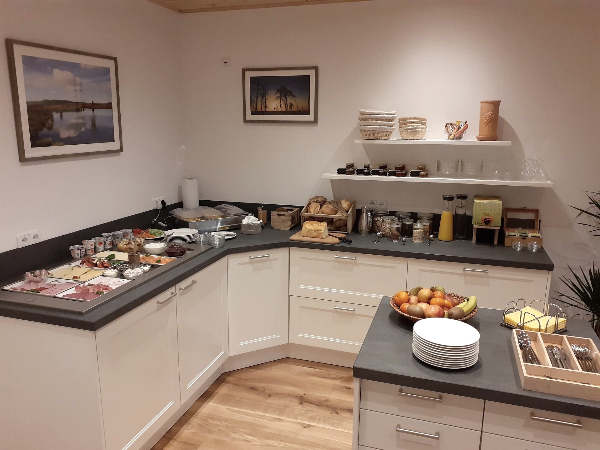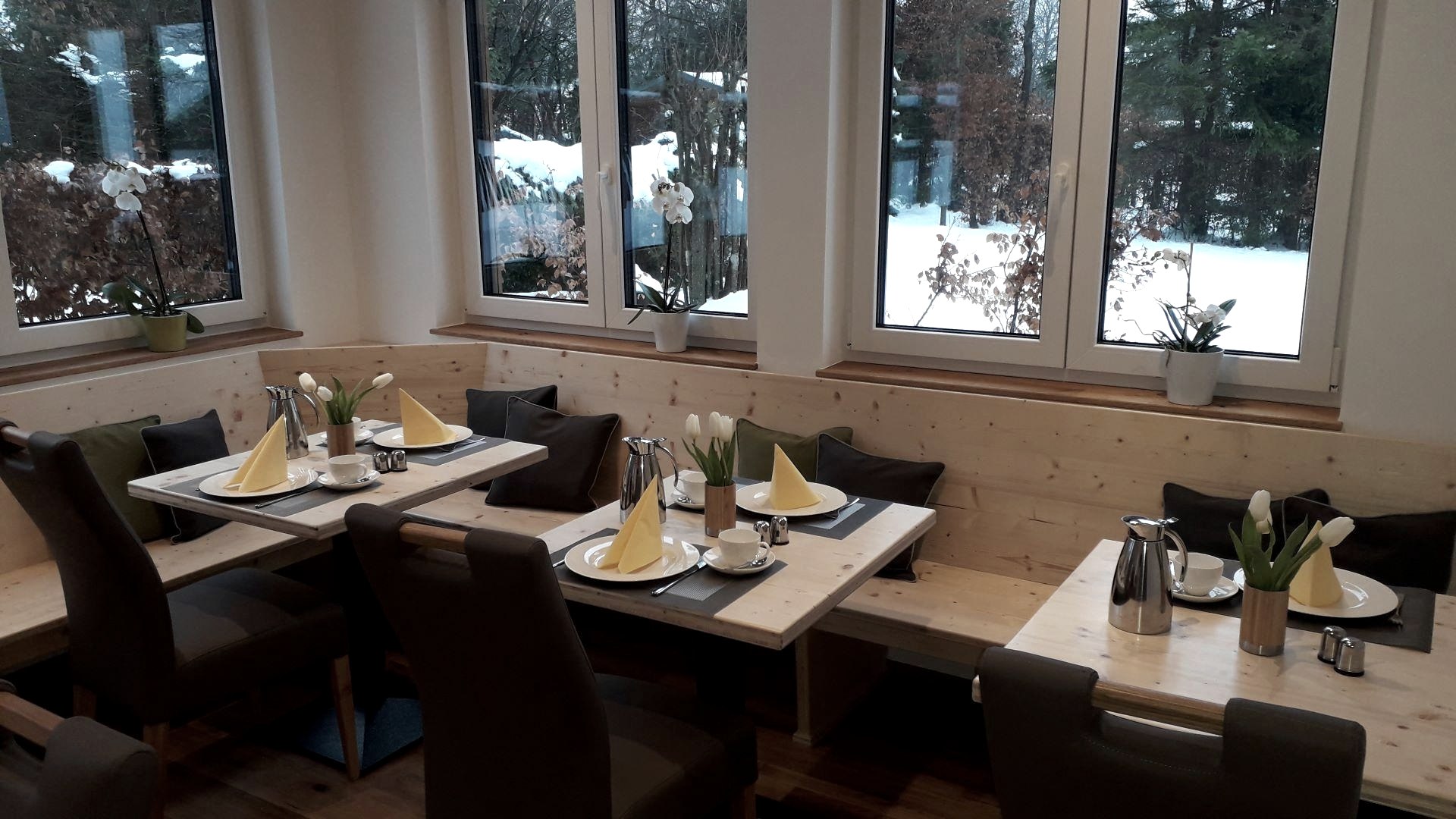 Dans notre nouvelle salle de petit-déjeuner confortable, vous commencez la journée frais et dispos, avec une vue magnifique sur la nature.