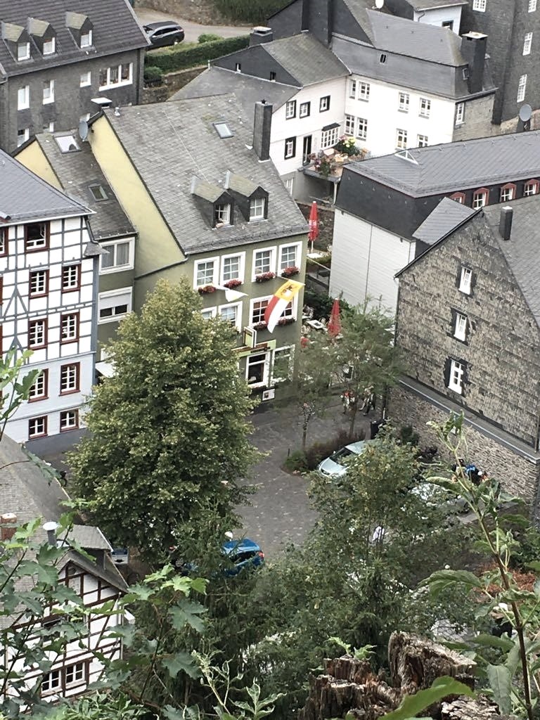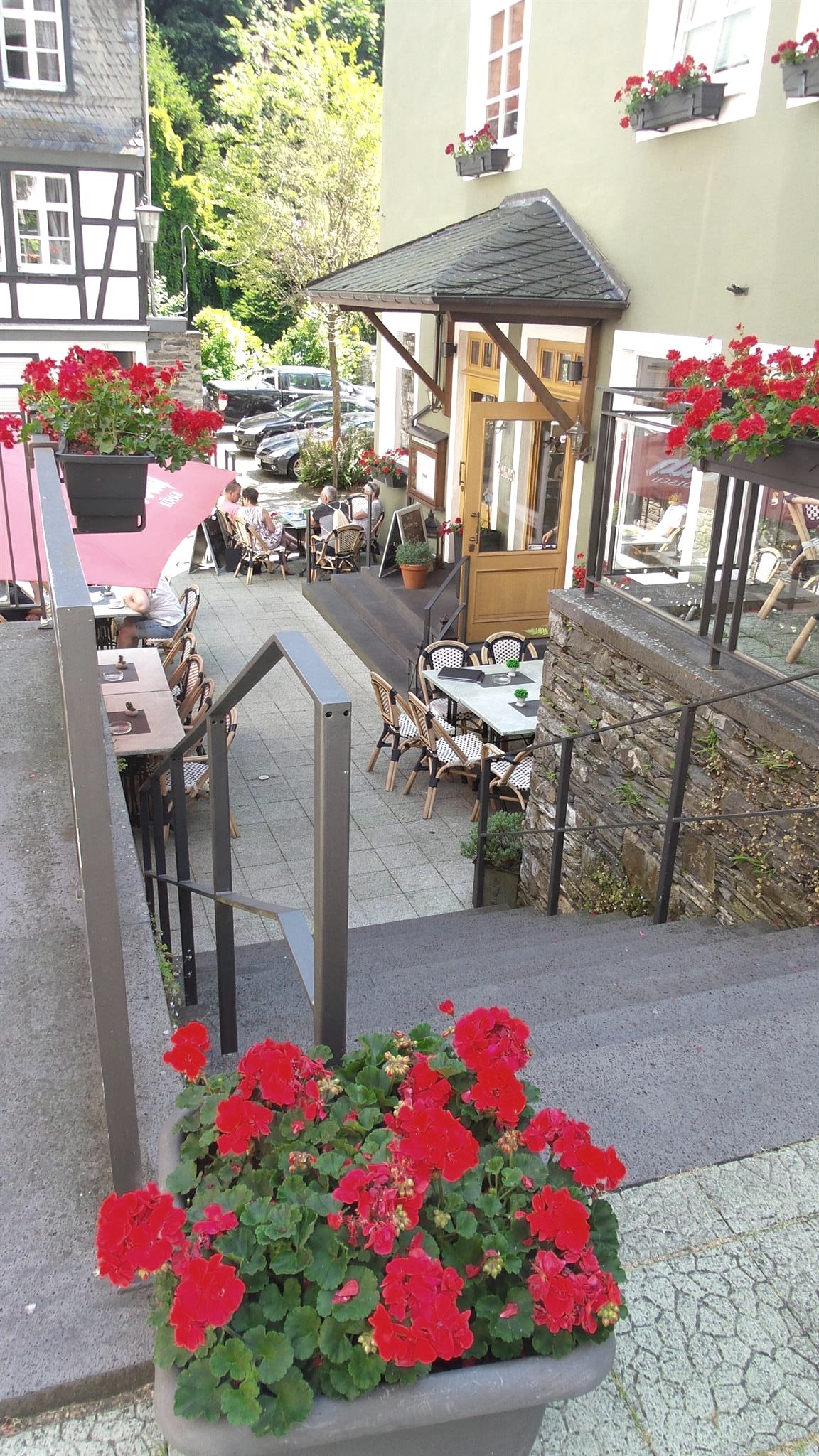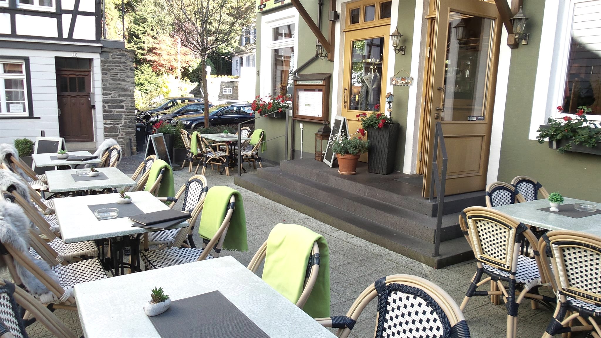 "Nous sommes à Monschau, rejoignez-nous ...", une cuisine typique de l'Eifel, alliée à une légèreté rurale vous attend en toute saison, que ce soit au printemps aux temps de narcisse, en été avec le festival classique, en automne avec nos spécialités saisonnières ou en hiver avec le marché de Noël. Nous nous réjouissons de votre visite - 120 terrasses ensoleillées et 55 places au restaurant vous invitent à la flânerie et à la détente.