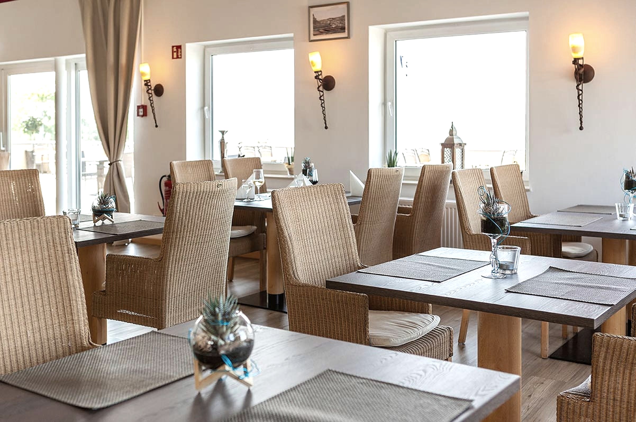 Vous découvrirez l'hospitalité et la bonne cuisine régionale dans notre restaurant Leo's avec sa terrasse adjacente. Vous pourrez y terminer la journée au soleil couchant en dégustant un délicieux repas accompagné d'un bon vin. Vous prendrez votre petit déjeuner dans la salle panoramique, où vous pourrez apprécier la vue sur le paysage vallonné de l'Eifel et le bon air de la forêt dès le matin en buvant votre café. Et bien sûr, les hôtes de la région sont également les bienvenus pour profiter de notre gastronomie. Que ce soit pour une fête privée, un dîner agréable entre amis ou une fête d'entreprise, nous proposons de belles salles de différentes tailles dans lesquelles vous pouvez faire la fête et vous régaler.