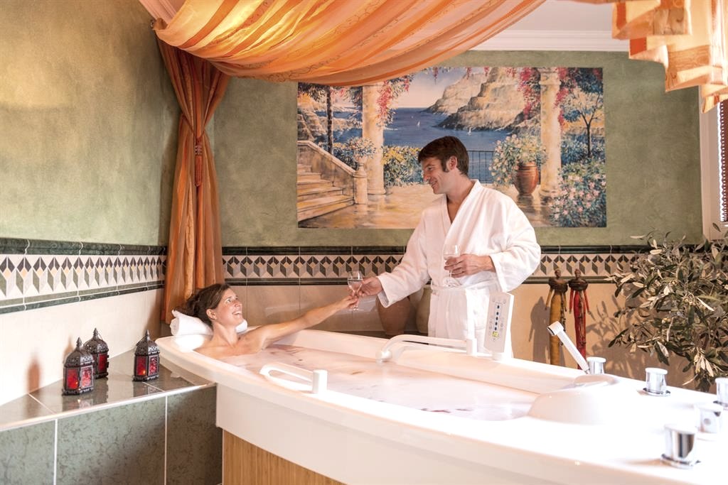 Notre oasis de bien-être offre une ambiance particulière sur 450 m². Elle dispose d'une piscine (env. 32 °C), d'un jacuzzi, d'un sauna finlandais, d'un bain de vapeur oriental, d'un tecaldarium, d'un bain de vapeur à la menthe, de douches sensorielles, d'une chaise longue softpack, d'une baignoire à bulles lumineuses, d'une salle de repos et d'une pelouse - un plaisir pour le corps et l'âme. Venez visiter notre restaurant entre prairies, forêt et nuages.