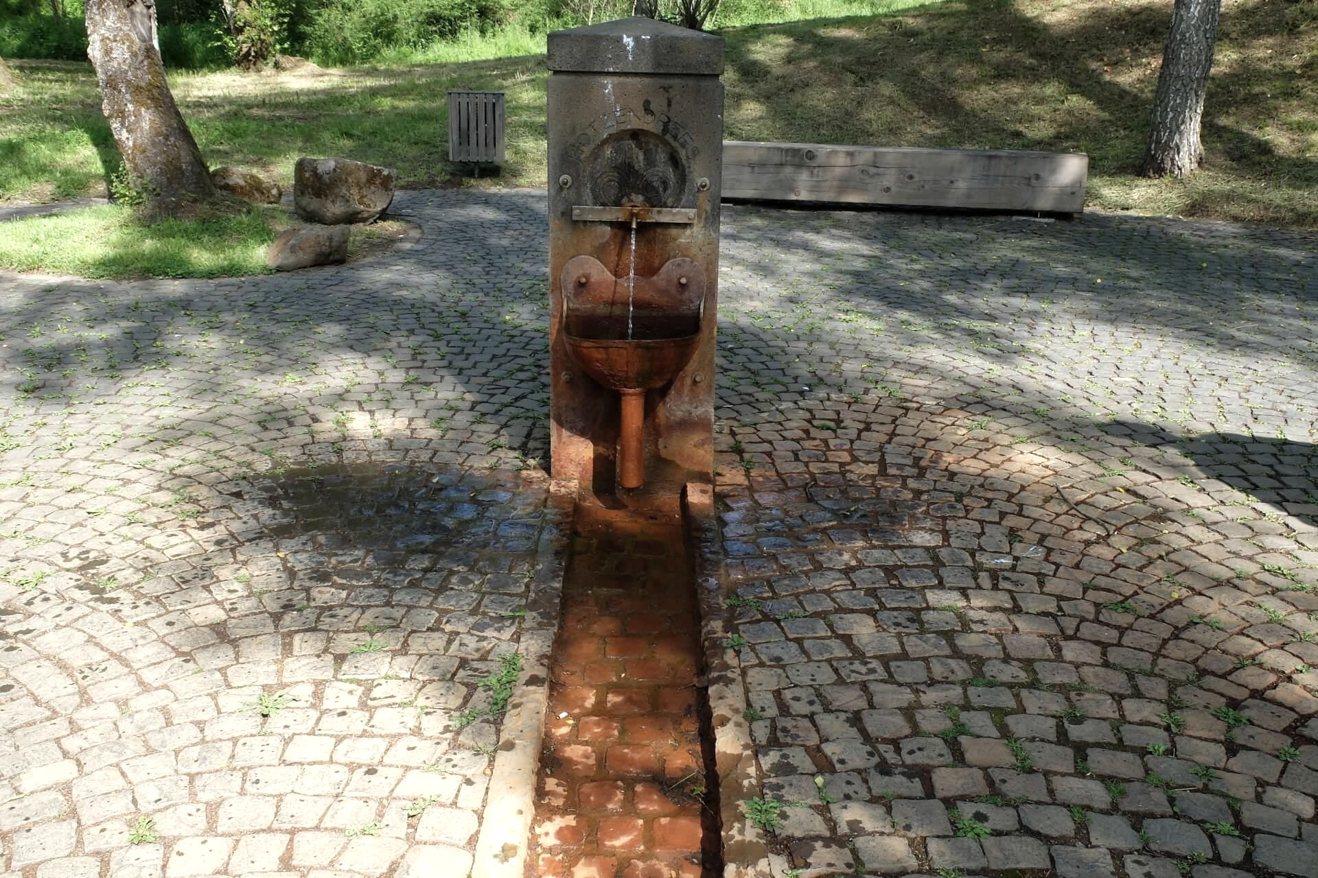 La "Burgbrunnen", comme l'appellent les habitants de Daun, est sans doute la fontaine la plus connue et la plus appréciée de la ville de Daun. Située à gauche de la Lieser, au pied de la colline du château de Daun, cette source contient du bicarbonate de calcium, de magnésium et de sodium et jaillit avec une eau gazeuse à une température d'environ 10 degrés.