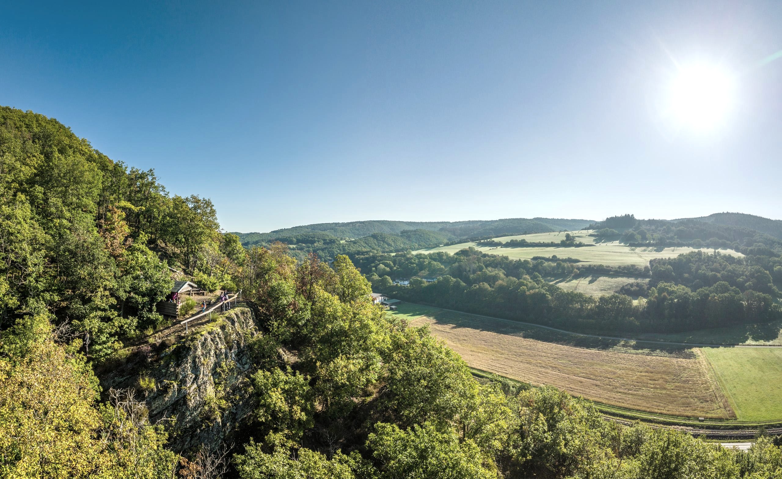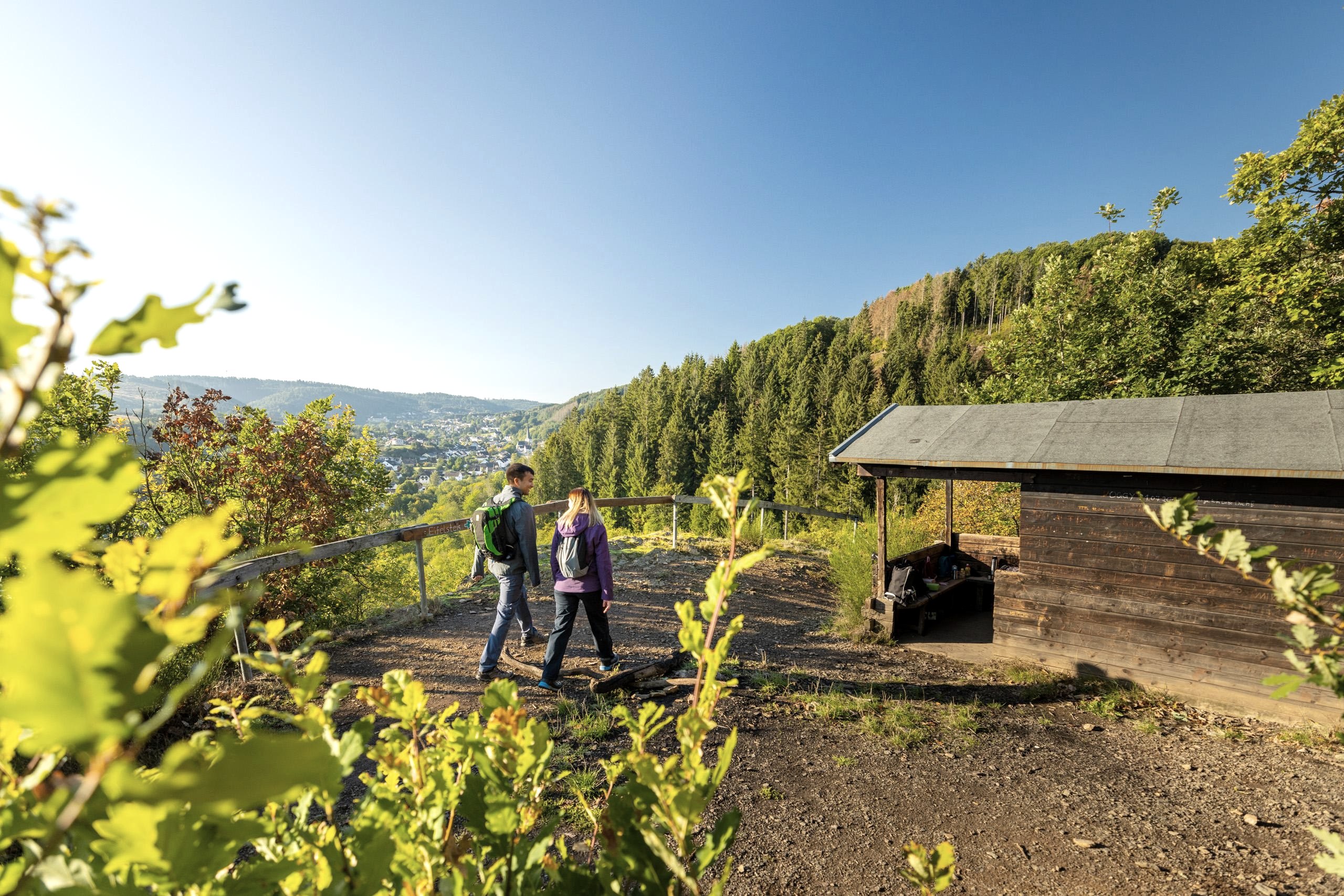 Du haut du rocher ("Ley" signifie rocher), j'ai une belle vue sur la vallée de l'Olef et je peux faire une première pause dans le petit refuge.