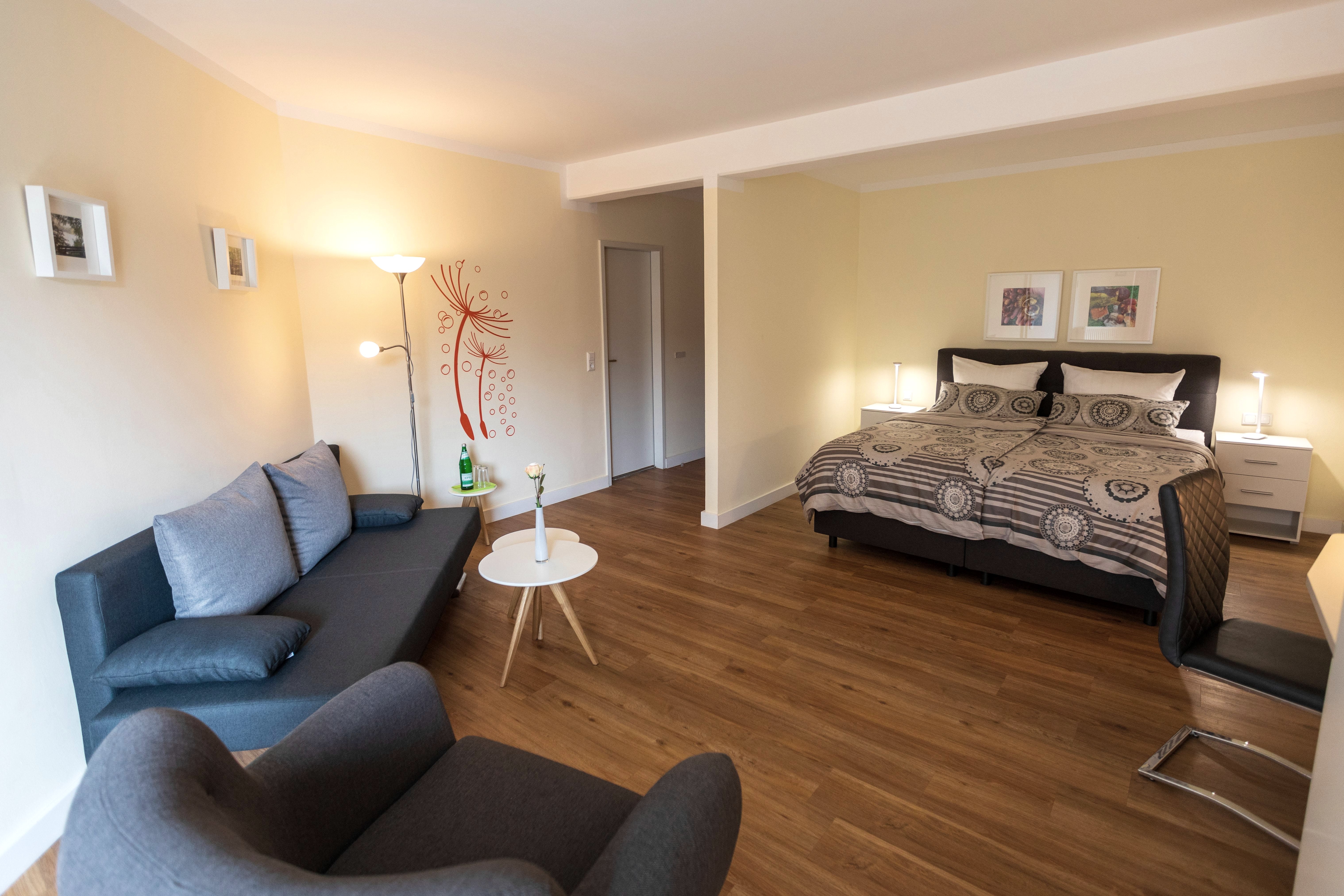 réfrigérateur, sauna et utilisation de la vapeur, des appels gratuits dans le réseau fixe allemand, stationnement disponible