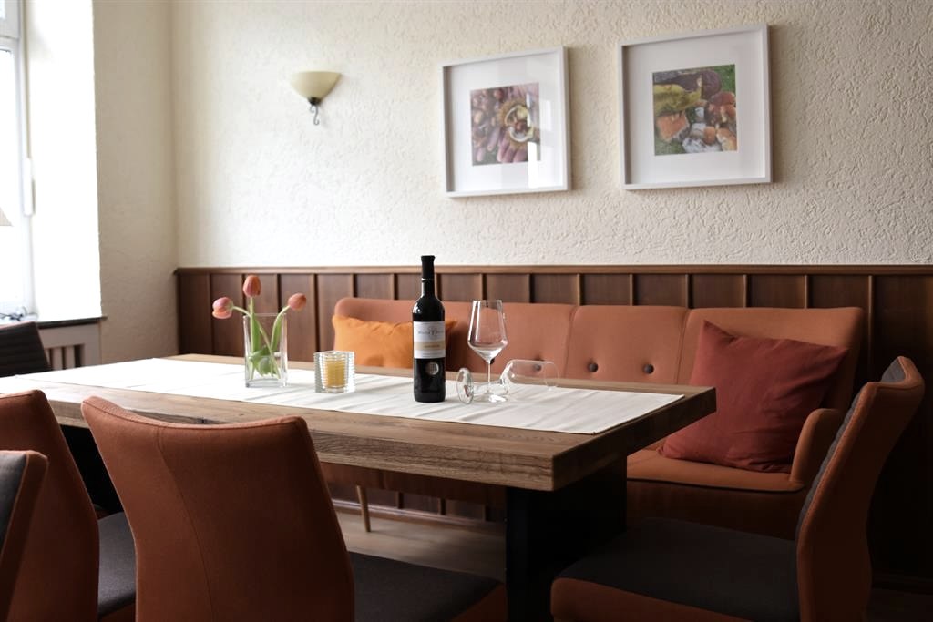 Dans notre bistrot, sur la terrasse et dans notre restaurant, nous aimerions vous propose une cuisine régionale et de saison et un accueil chaleureux. Vous pouvez terminer la soirée avec un verre de vin Moselle ou une bière.
