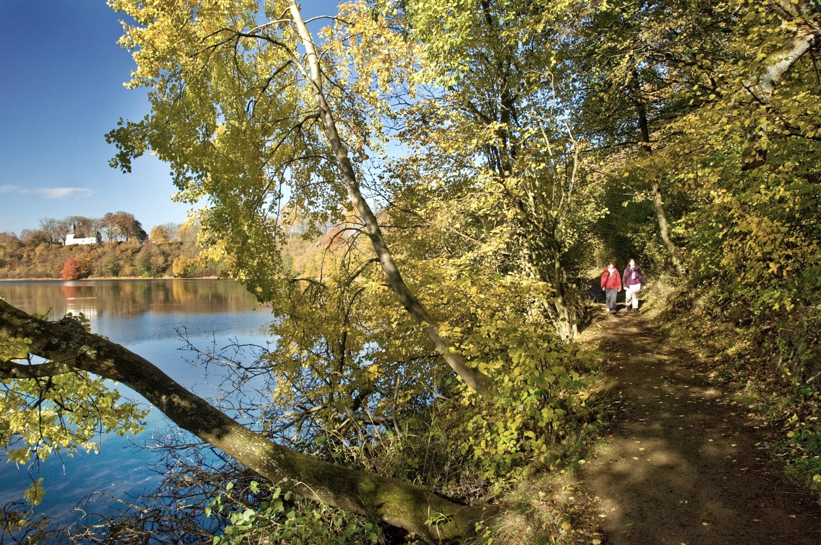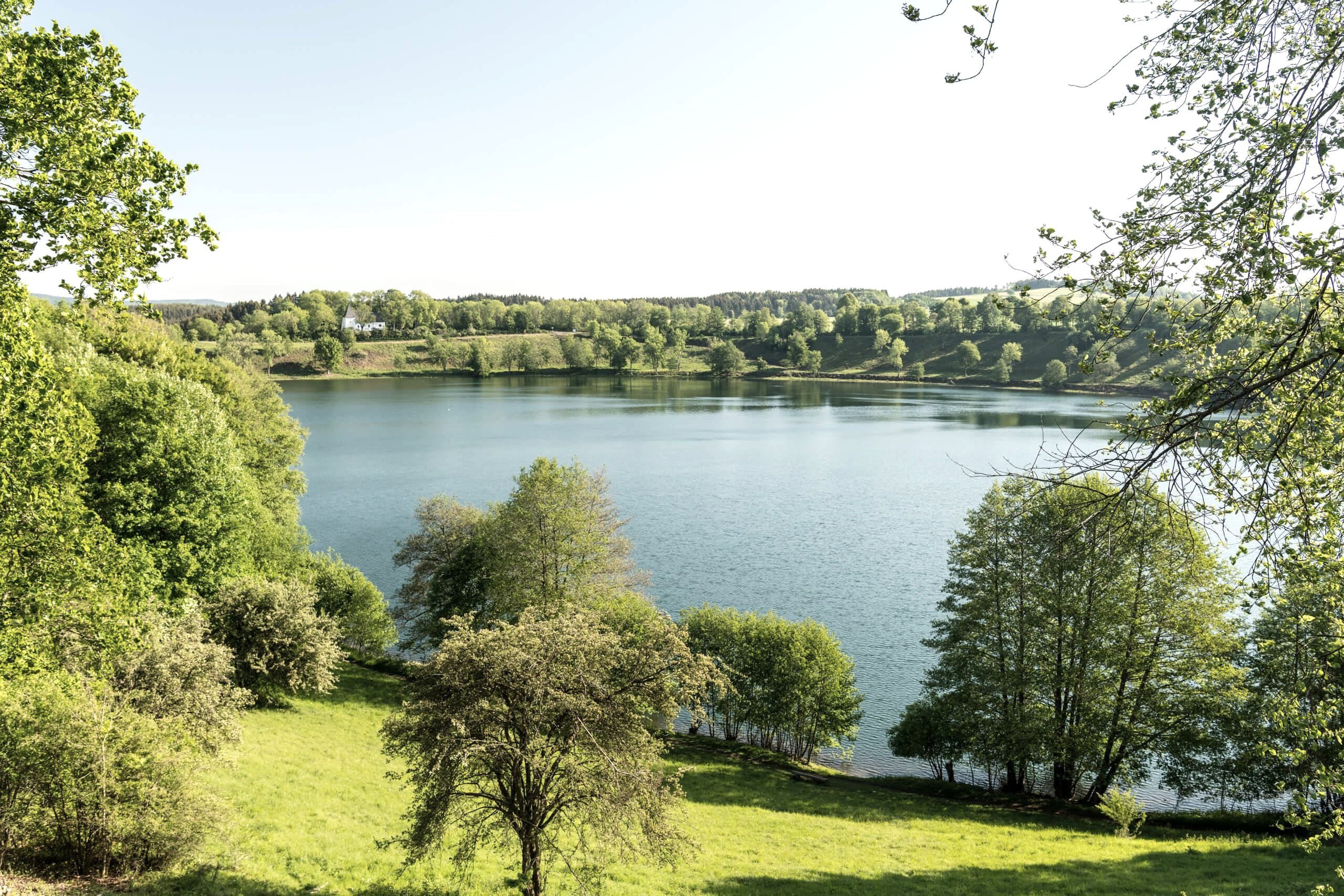 Le peintre paysagiste allemand Fritz von Wille était lui aussi tellement fasciné par le Weinfelder Maar qu'il l'a immortalisé à maintes reprises dans ses tableaux. L'un de ses motifs favoris était la petite chapelle de la rive nord, dédiée à saint Martin. Elle était autrefois l'église paroissiale du village de Weinfeld, qui a été ravagé par la peste au XVIe siècle. Ceux qui font sonner les petites cloches à l'intérieur en tirant sur les cordes sont autorisés à faire un vœu. Aujourd'hui encore, le cimetière associé est entretenu et utilisé par la communauté locale de Schalkenmehren. Le deuxième nom, Totenmaar, en est dérivé.