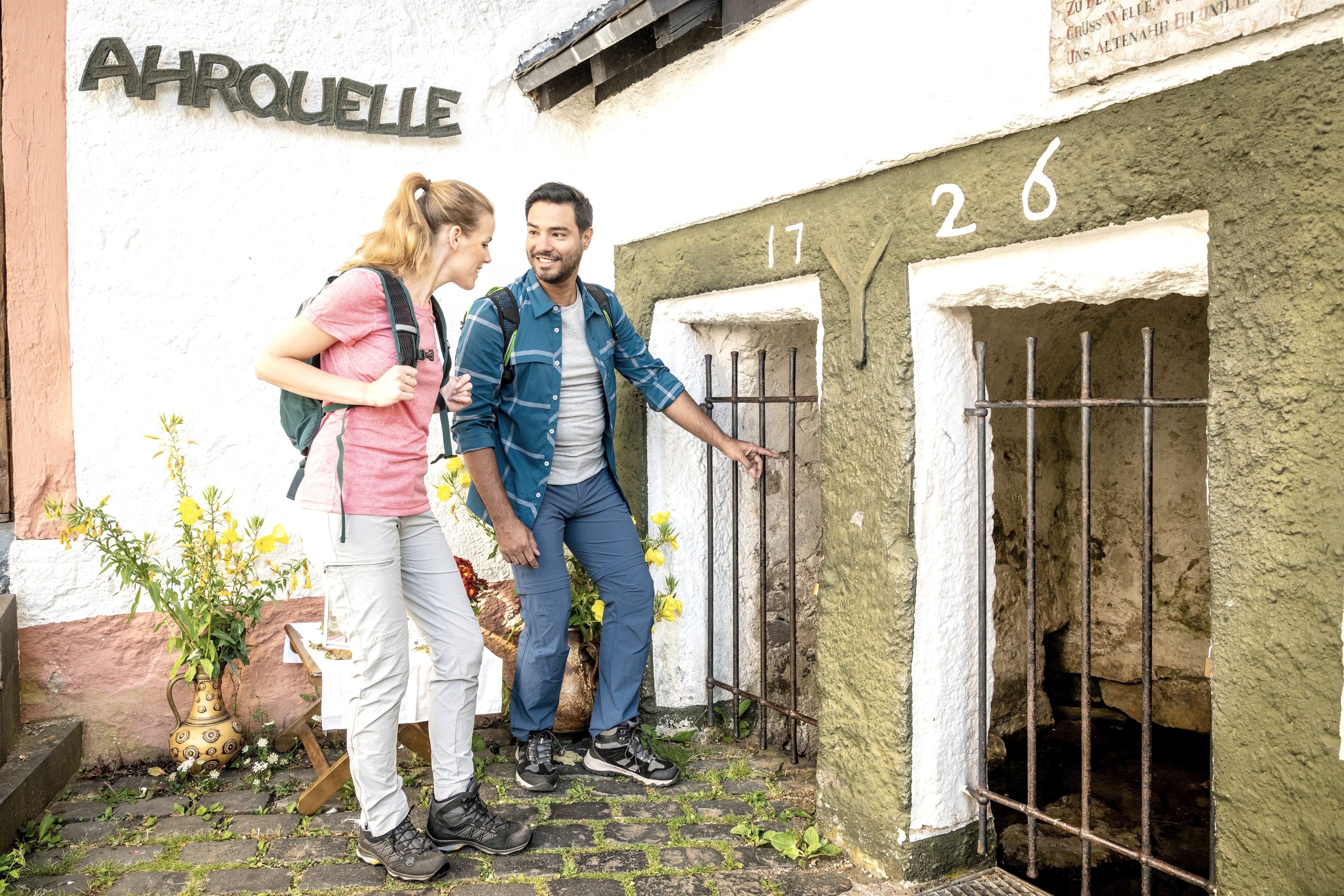 Bien entendu, il ne faut pas manquer de visiter la source de l'Ahr, l'un des principaux symboles de la ville. Elle prend sa source dans la cave d'une ancienne maison à colombages du centre-ville, ce qui vaut la peine d'être vu. De la source, la rivière serpente ensuite à travers la vallée romantique de l'Ahr jusqu'à Sinzig, où elle se jette finalement dans le Rhin. La piste cyclable de l'Ahr et le sentier de randonnée Ahr-Steig démarrent à la source de l'Ahr. Le sentier de grande randonnée Eifelsteig (étape 7) passe également par là. Il est ensuite possible de poursuivre la balade à travers les charmantes ruelles de la vieille ville. Pour les familles avec enfants, l'aire de jeux d'aventure Weiherpark est une halte parfaite pour se défouler et jouer. D'autres curiosités sont par exemple la Hirten- et Georgstor ainsi que le musée de l'Eifel, la chapelle de Hülchrath et la villa romaine "Villa rustica".