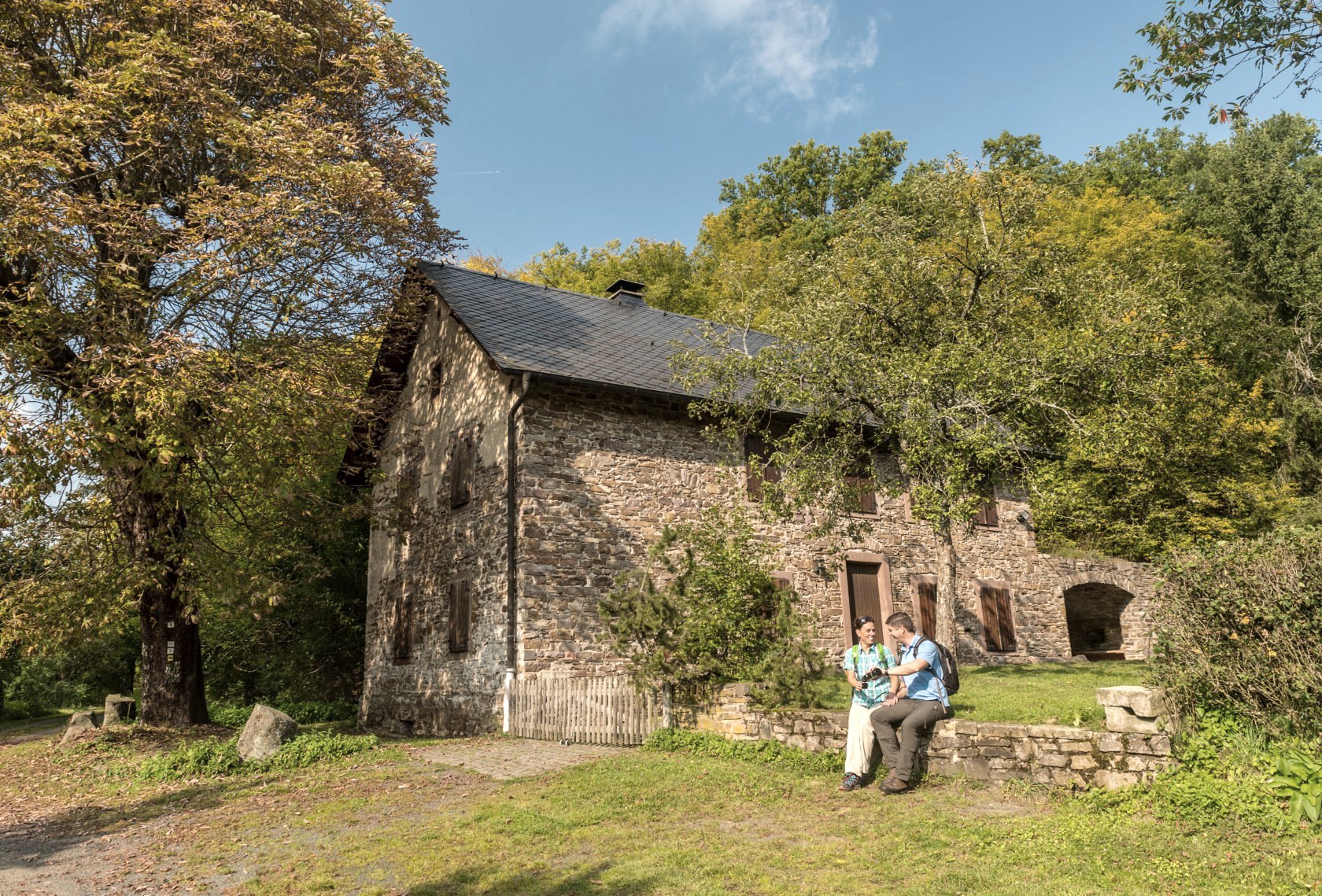 Qui avait le plus de choses à se reprocher ? Meunier ou paysan ? Chevalier de la croix ou chevalier brigand ? Seigneur de justice ou sujet ? En tout cas, aucun des compagnons de l'Üssbach n'était exempt de culpabilité ! Mais toute la vérité restera à jamais son secret. Ici et là, les destins de tous ces gens apparaissent encore aujourd'hui de manière isolée et presque palpable, par exemple dans les châteaux d'Ulmen ou les vestiges du moulin de Demerath. À certains endroits, tu peux même les ressentir, comme au Wollmerather Kopp, où se réunissait chaque année la Haute Cour. Et parfois, des initiales profondément gravées dans le bois d'un arbre te racontent même des souvenirs d'heures simplement agréables.