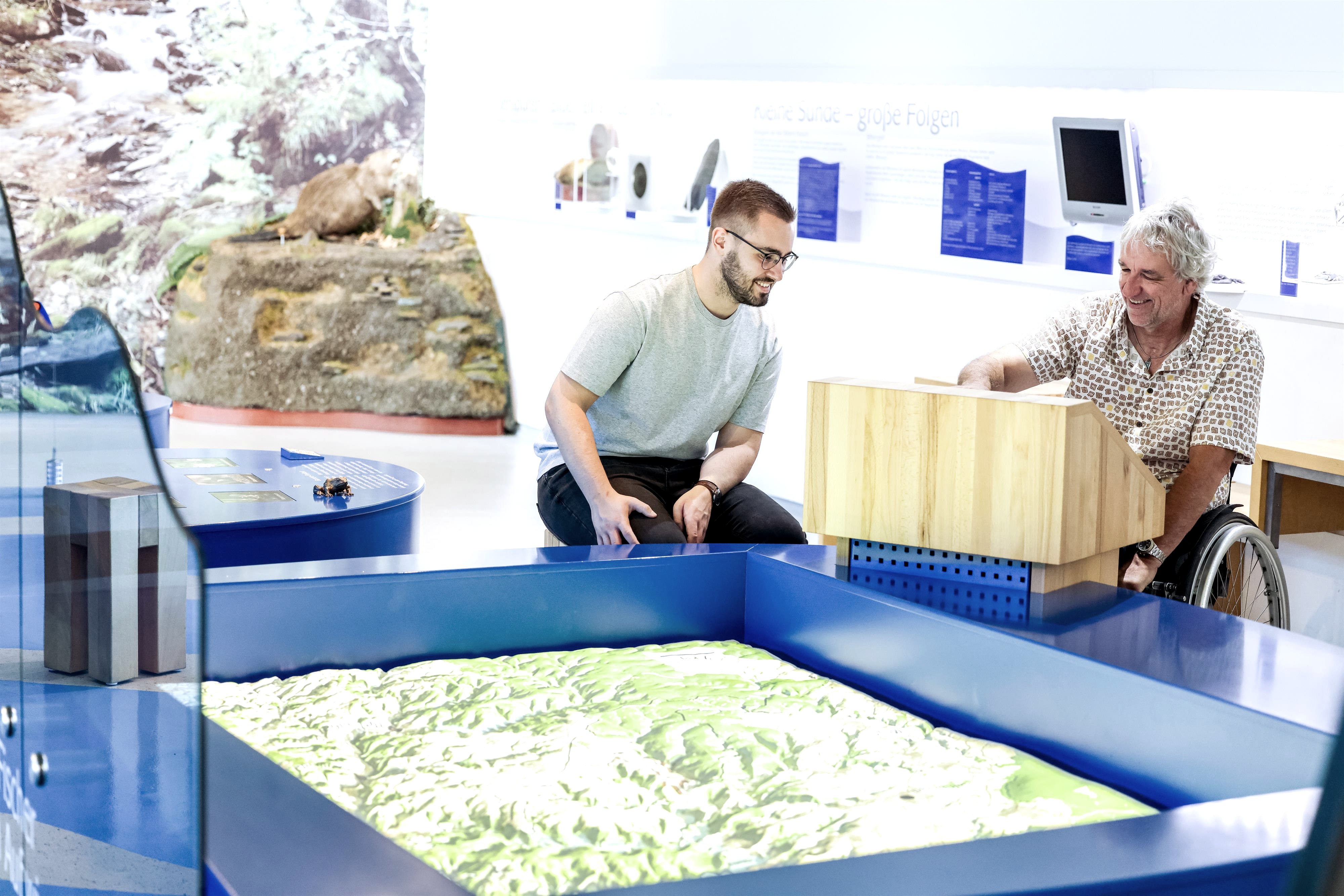 Le Nationalpark-Tor Rurberg est le point de départ idéal pour découvrir le Parc national de l'Eifel, situé juste à côté, à pied, en vélo ou en bateau. L'équipe de Rursee-Touristik se réjouit d'accueillir chaque visiteur et a toujours des conseils pour une super randonnée, un tour à vélo et des excursions pour explorer la région d'aventure variée du Parc national de l'Eifel. Il est possible de s'équiper de suffisamment de cartes et de matériel d'information pour que rien ne s'oppose à une excursion parfaite. En outre, la boutique correspondante invite à fouiller. Chacun y trouvera un beau souvenir pour soi-même ou un cadeau qui rappellera sa visite dans la région d'aventure du Parc national de l'Eifel. De plus, le W-LAN est disponible gratuitement. L'exposition "Artères vitales de la nature", installée dans la porte du parc national, permet de découvrir les espaces vitaux que sont les cours d'eau et les plans d'eau, notamment à travers la perspective aérienne d'un milan. L'écrevisse, la moule perlière et le castor montrent l'importance du parc national de l'Eifel pour l'homme et la nature. Une visite est le point de départ idéal pour s'informer sur le parc national. L'entrée est gratuite. Tous les samedis à 11 heures, un tour de 3 à 4 heures à travers le parc national de l'Eifel commence à la porte du parc national. La participation est gratuite.