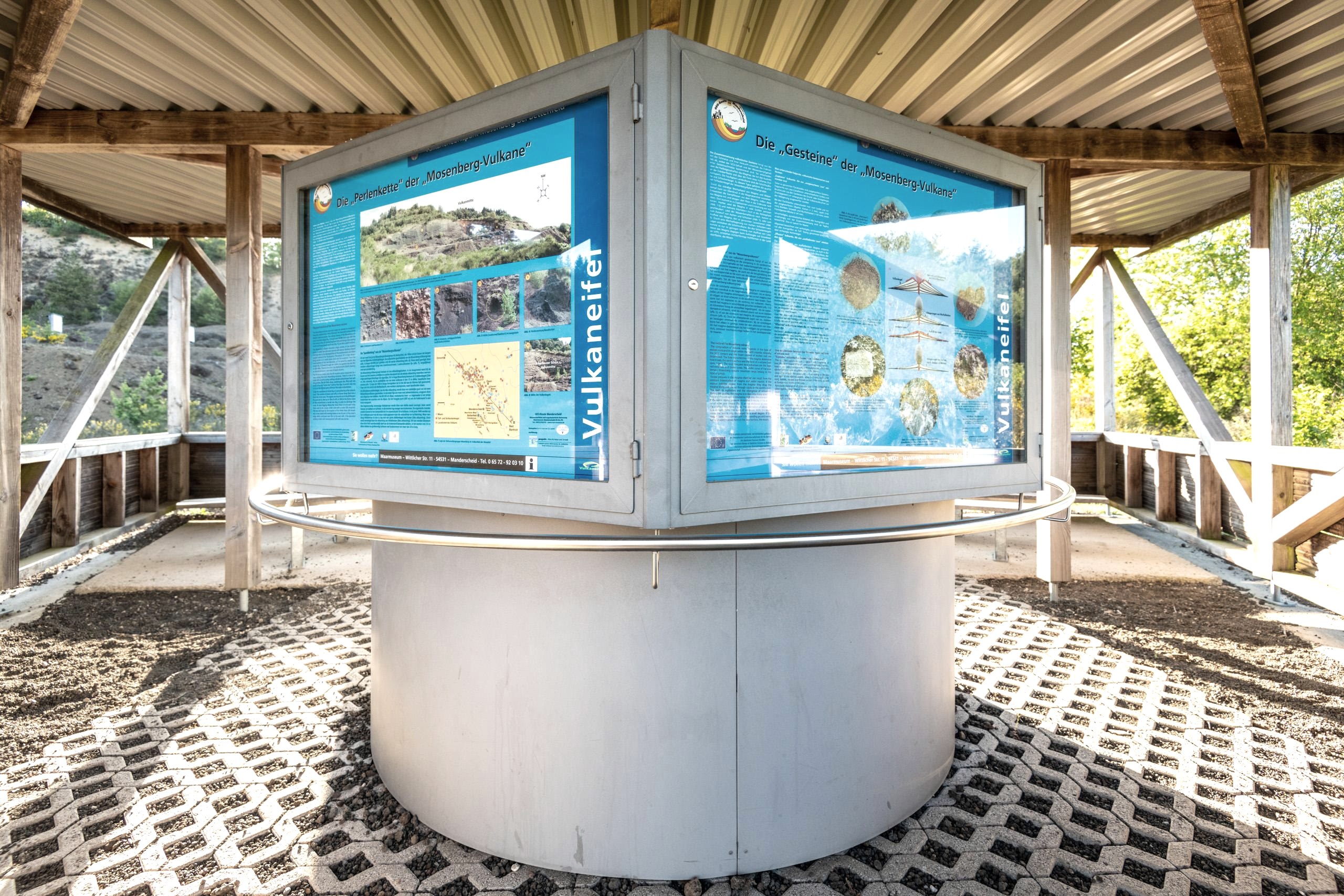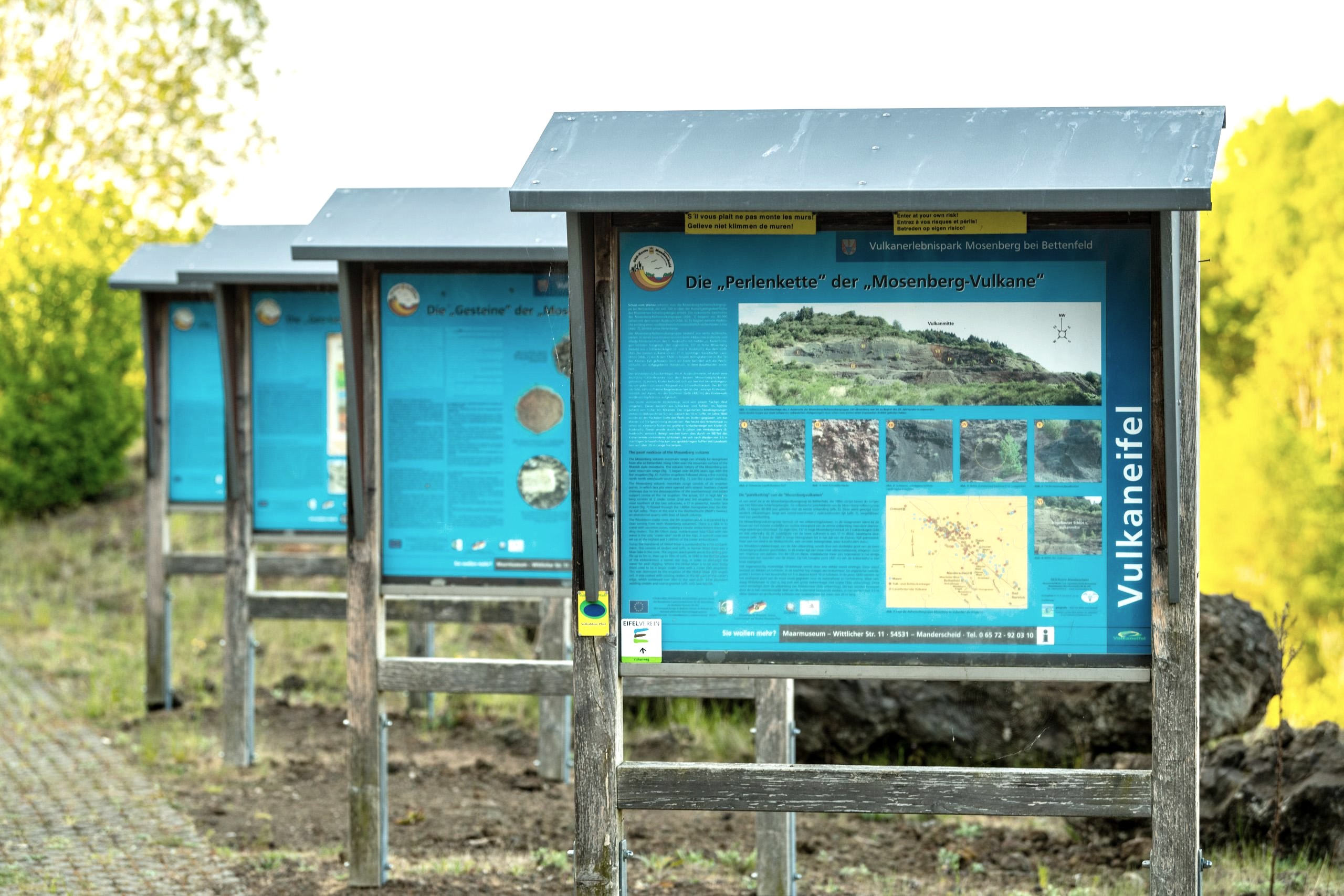 Ce que le volcanisme a créé dans l'Eifel devient tangible dans le Volcano Experience Park. Des forces brutales ont façonné le paysage pour en faire ce qu'il est aujourd'hui. Au parc Mosenberg Volcano Experience, vous pouvez en apprendre davantage sur le contexte du spectacle explosif d'il y a des milliers d'années. Lorsque vous vous tenez à côté de l'immense mur de lave qui révèle des affleurements géologiques intéressants, vous vous sentez soudain très petit et vous comprenez comment la nature a régné ici. Les affleurements géologiques sont comme une fenêtre sur l'histoire de la Terre, car ils vous en disent beaucoup sur la formation et le développement des roches. Regardez par cette "fenêtre" et découvrez ce qui s'est passé à l'époque. Des panneaux d'affichage expliquent comment le volcanisme a façonné l'Eifel. Un regard passionnant sur l'histoire de la terre!