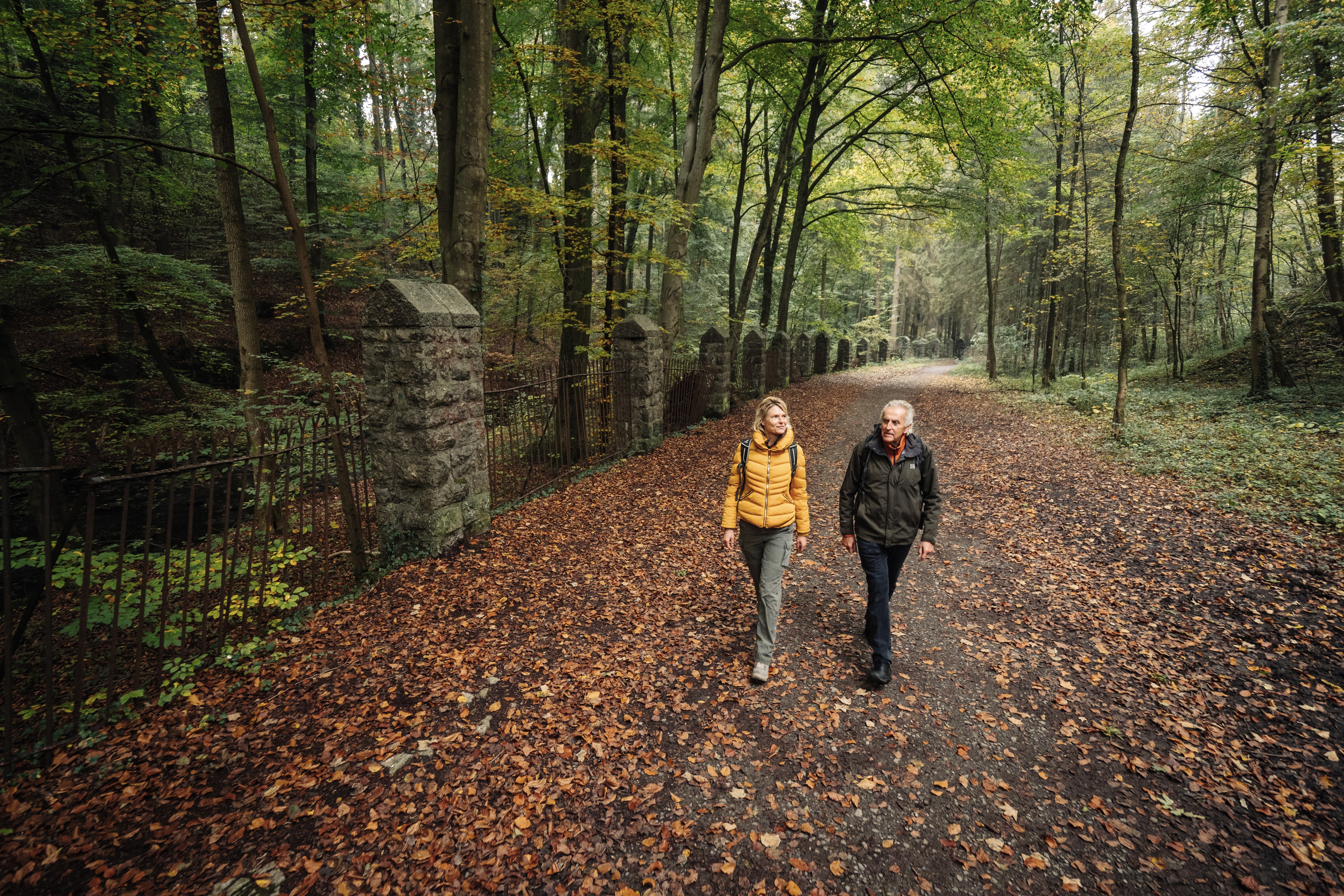 Depuis le point des trois frontières sur le Vaalserberg dans le vénérable Limburger Reichswald, tu traverses l'ancien mini-État ou État neutre de Moresnet. Emerveille-toi de cette curiosité qui dure depuis plus d'un siècle, à commencer par le Congrès de Vienne de 1815. Apprécie le bocage verdoyant le long de la Gueule, le "château d'Emma", l'imposant viaduc ferroviaire sur la Gueule, les châteaux d'eau dans le premier lieu d'hébergement à Eynatten ou le charmant village de potiers de Raeren. Ensuite, la métropole drapière riche en histoire d'Eupen, capitale et siège du gouvernement de la communauté germanophone de Belgique, te rendra hommage. Depuis la ville haute, laisse ton regard se perdre vers l'est. C'est sur ce mur vert que tu te promènes ! Tu suis la Hill et ses eaux ambrées en amont. Tu montes par une vallée sauvage jusqu'à la maison Ternell et conquiers, par monts et par vaux, la crête de la Brackvenn. Le chemin serpente, en partie sur des passerelles, jusqu'à la frontière invisible entre l'Allemagne et la Belgique. Ici, tu touches au Eifelsteig et tu mets le cap sur la ville médiévale de Monschau en passant par le Monschauer Heckenland. Après avoir pris des forces culinaires, tu commences deux jours de randonnée sur l'Eifelsteig jusqu'à Kornelimünster, aux portes de la ville de la cathédrale et du tombeau de l'empereur Charlemagne à Aix-la-Chapelle. Tout d'abord, la vue sur l'Eifel du Steling, à 658 m d'altitude, t'attire. Tu toucheras à nouveau l'étendue d'un paysage primitif millénaire, tu découvriras l'histoire des fermes Reinartz et tu passeras la nuit à Roetgen. L'étape finale brille avec le barrage de Dreilägerbach au niveau du lac et rappelle encore une fois l'ambiance unique des tourbières hautes lors du passage par la Struffelt Heide. Peu après le viaduc de la vallée de l'Iter, la vieille ville historique d'Aix-la-Chapelle-Kornelimünster, le point d'arrivée, vous salue.