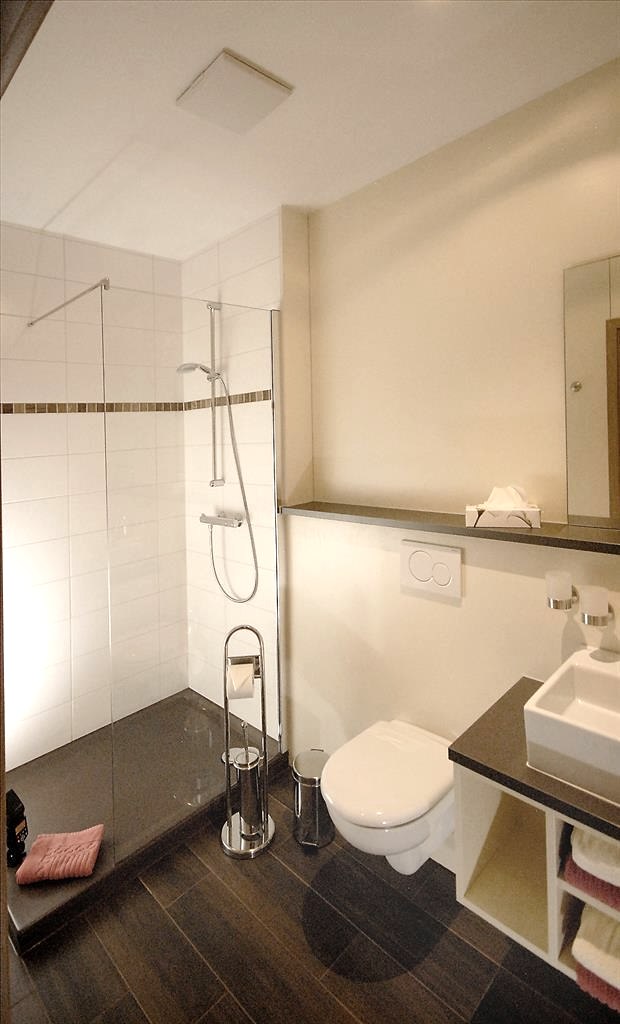 Alle Zimmer sind mit Boxspringbetten, ebenerdiger Dusche und WC, Fön, Hand- und Badetuch ausgestattet. Des Weiteren bieten die Zimmer Flachbildschirm, W-LAN, Wasserkocher und Balkon.