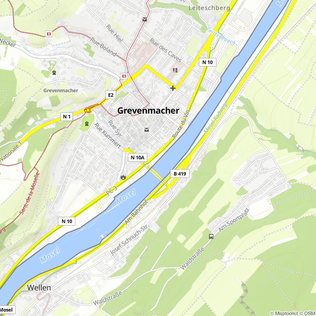 Dieser Rundwanderweg führt Sie zu Beginn ca. 800 Meter über die schöne Moselpromenade und mündet dann in eines der Wohnviertel außerhalb der Festungsmauer. Zahlreiche Sitzmöglichkeiten entlang der Promenade laden dazu ein, das rege Treiben auf und entlang der