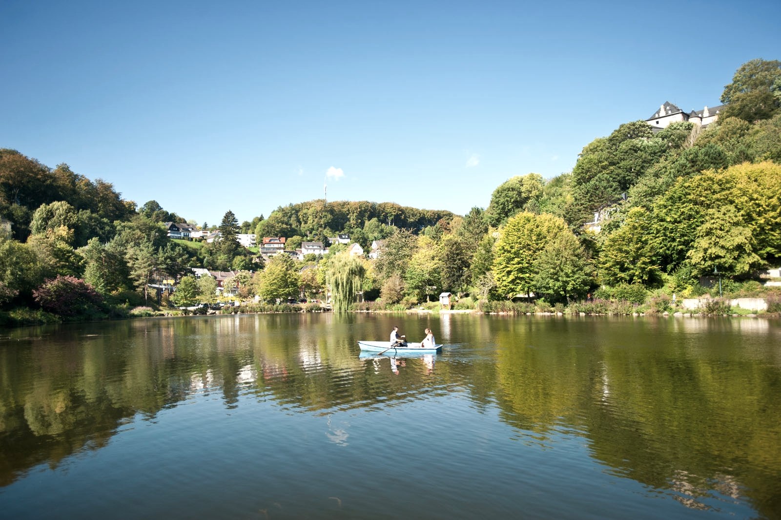 Vanaf de Kalvariënberg is het doel van de etappe bijna al te zien. Met lichte tred volg je de Mirbach, die vrolijk door het dal slingert en je vergezelt naar de plaats. Wat staat daar voor een kleine, maar ook imposante kerk? Grijp je kans en neem een kijkje binnenin! Het is de moeite waard. Duizenden gouden mozaïekstenen zijn hier kunstzinnig aaneengeschakeld en zetten de Erlöserkapelle in een bijzonder licht. Wat een afsluiting!