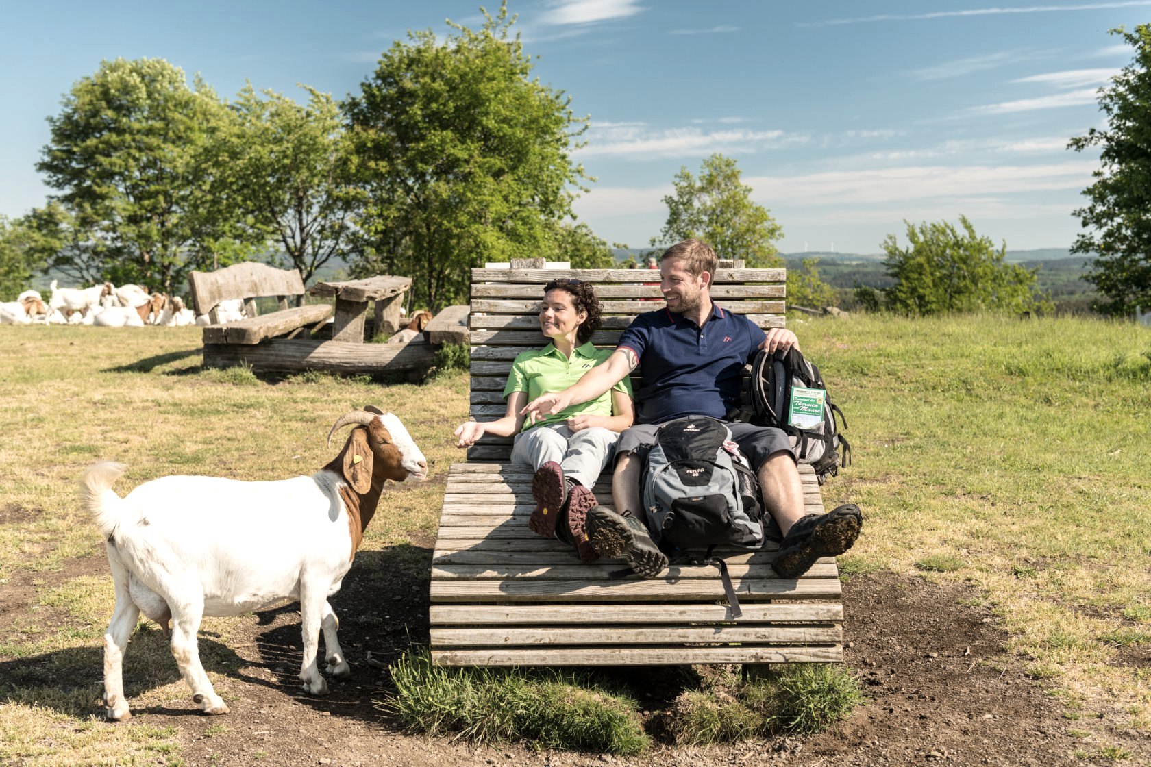 Je wandeling begint vandaag gemoedelijk met eerst een aantal meter door het Kurpark in Daun. Maar je merkt het al, het landschap moet hier een vurige geschiedenis hebben. Er heerst een bijzondere sfeer, geheimzinnig en krachtig. Stap voor stap begin je met de eerste klim en ziet iets tussen de bomen heen glinsteren. Het is de Gemündener Maar - een vulkanisch meer. Je wist het toch - hier moet iets dramatisch gebeurd zijn! Enorme explosies en vuur uit het binnenste van de aarde hebben hier in de Eifel gaten geslagen en bergen opgeworpen. De gaten heten maren en een aantal heeft zich op den duur met water gevuld. Wat stil en donker het water is en tegelijkertijd fascinerend. Je stapt verder de berg omhoog, tot de top van de kraterrand en je ontdekt een andere maar: de Weinfelder Maar (ook dodenmaar genoemd). Hierboven staat de stenen Dronketoren, met gemak beklim je de traptreden naar het uitzichtpunt. Je laat je blik glijden over het krachtige landschap van de Vulkaaneifel. Wat een verheven gevoel! Maar je hoort ook iets: mekkert daar iemand? Inderdaad! Op de weiden bij de Weinfelder Maar worden geiten ingezet als onderhouders van het landschap. Via een smal pad ga je nu bergafwaarts, naar de Schalkenmehrener Maar, aan de oever is de gelijknamige plaats gevestigd. Alle drie de maren samen staan bekend als de Dauner Maren. Achter Schalkenmehren leidt de wandeling je naar het groene dal van de Lieser. Het kleine riviertje kabbelt schilderachtig voort. Je deelt het stille dal alleen maar met de natuur en luistert naar het vogelgekwetter en het zachte ruisen van het water. Je blijft in het lange dal tot de burchtstad Manderscheid, het doel van de etappe. Kort voor Manderscheid volg je het rotsachtige pad en je kunt voor het eerst een blik opvangen van de Oberburg Manderscheid.