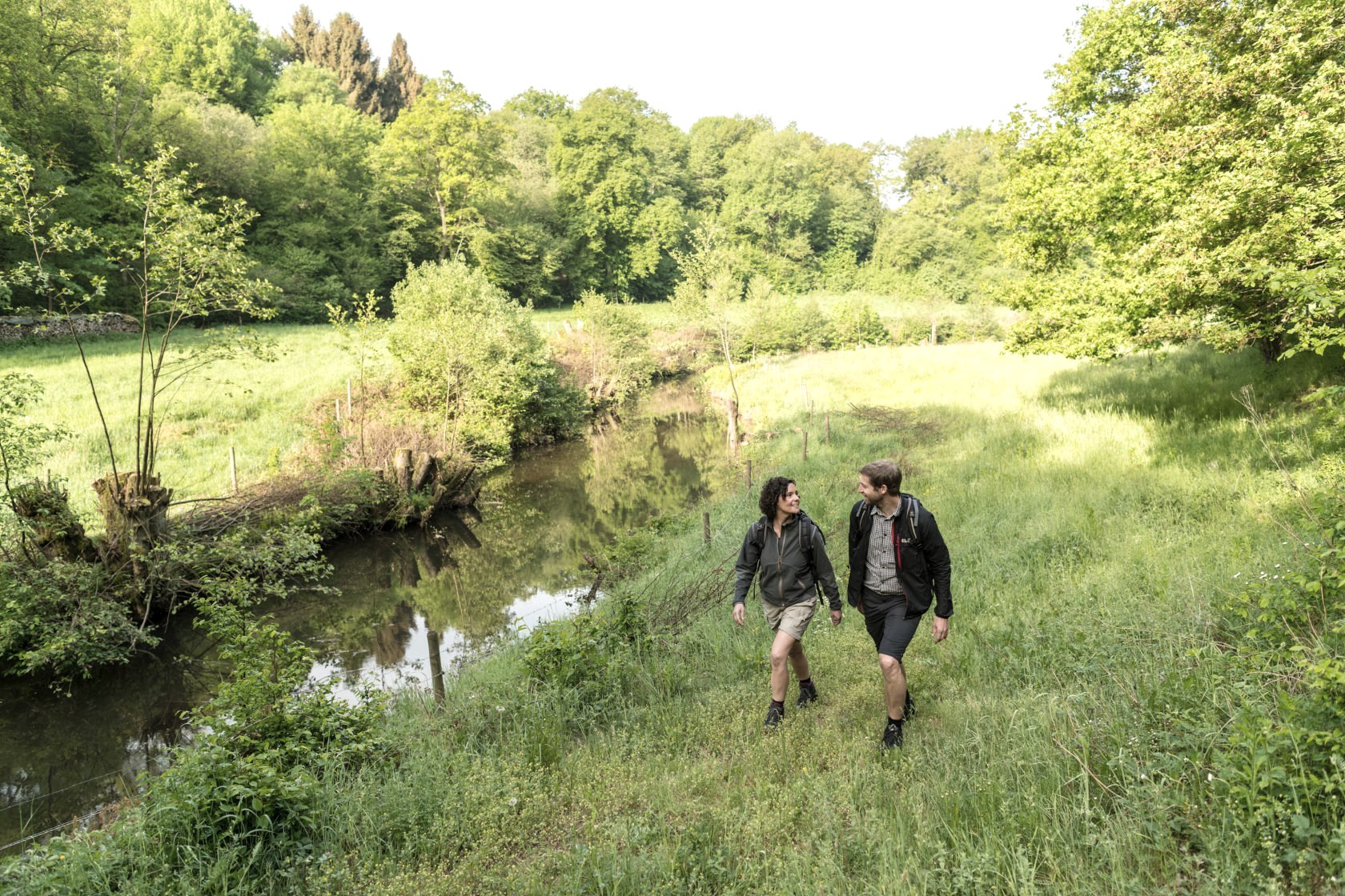 Met het klooster Himmerod heb je het Salmtal bereikt en volg je de loop van de rivier in Zuidoostelijke richting. Net zo rustig en idyllische zoals reeds in het Liesertal wandel je door het groene landschap en geniet je van de bochtige loop van het pad met slechts weinig hellingen. Je wandelt voorbij aan historische molens en kunt je fantasie vrije loop laten als je verschillende motieven ontdekt in de rotstformaties langs de weg. De wandeling wordt slechts één keer onderbroken door de tunnel onder een snelweg, wat trouwens de enige is op de hele Eifelsteig. Het volgende dorp Landscheid zie je slechts één keer kort aan de rand van het dorp, voordat je gelijk weer verder in het dal van de Salm door de Eifel loopt. De afsluiting van deze zeer natuurrijke etappe vormt het kleine dorpje Bruch, wat door de rustig slingerende rivier wordt gedeeld. Aan het einde van de ontspannende wandeling is een wandeling naar Burg Bruch, die met zijn twee torens het dorpsbeeld bepaald, de moeite waard.