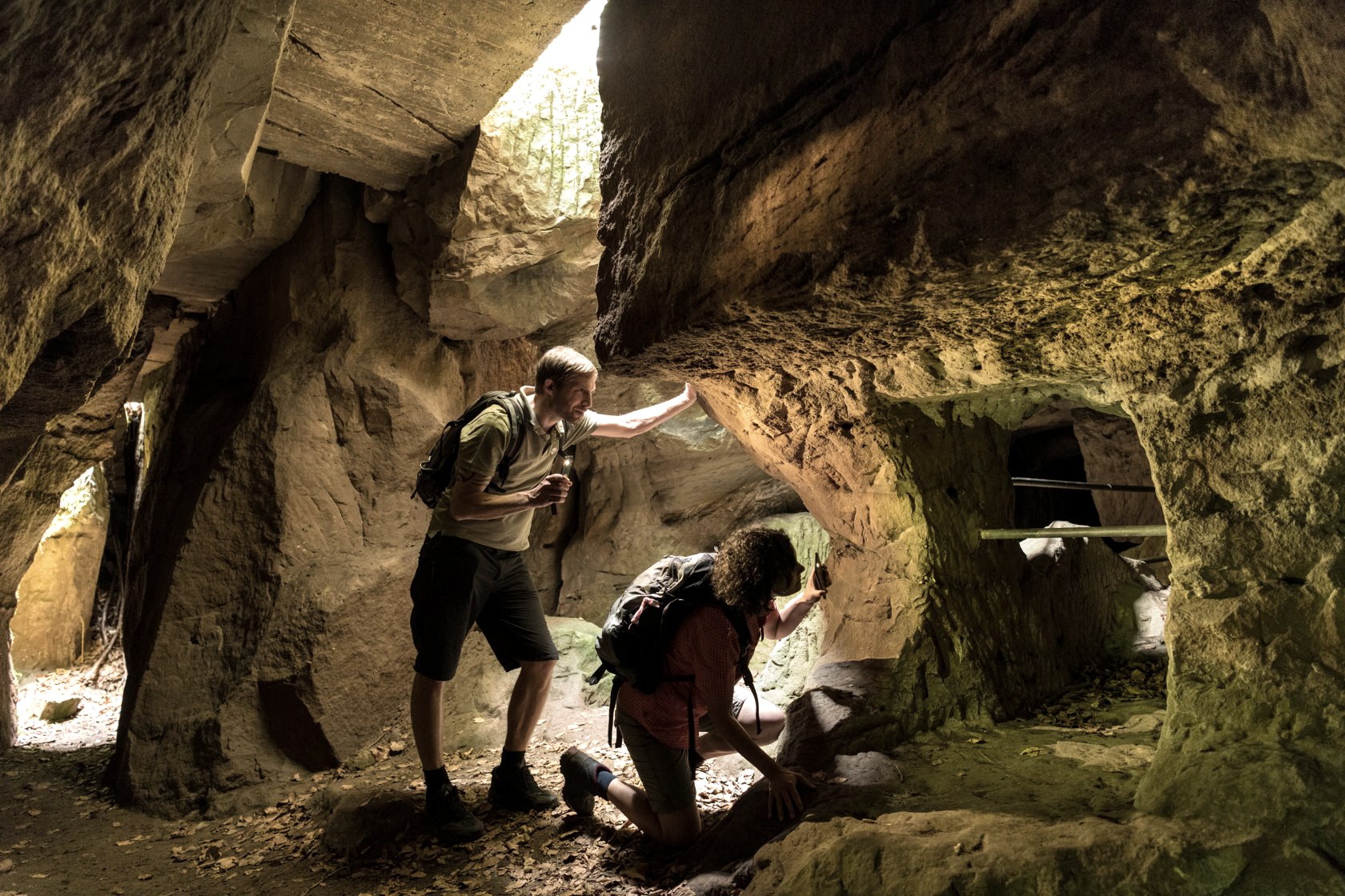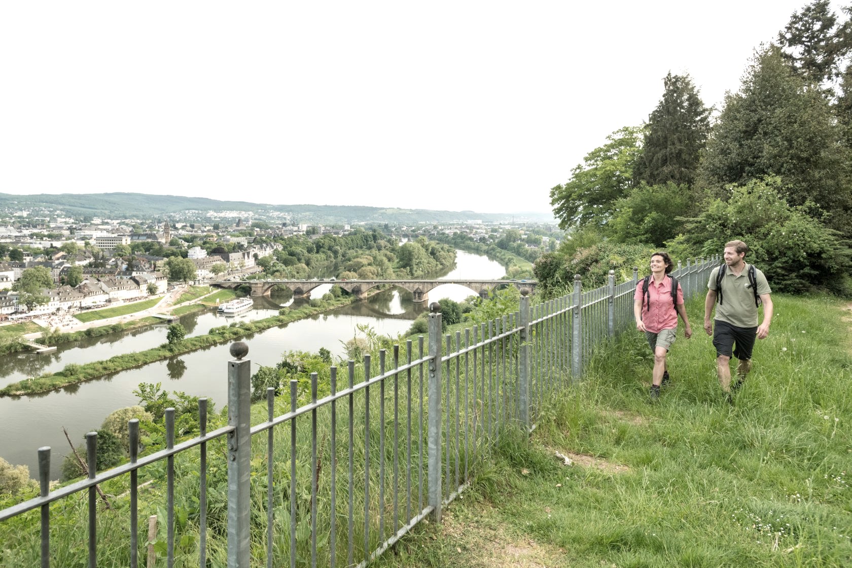 De eerste stappen zet je in het schilderachtige Kylldal, zacht gekabbel van het kleine riviertje begeleidt je en brengt je op dreef voor de dag. Dan wordt het rotsachtiger, een beek kronkelt steen voor steen door het dal, soms zelfs als kleine waterval. Om je heen oorspronkelijke natuur, wild groen, je voelt je een beetje alsof je op een expeditie bent. Je vraagt je af: hoe kom ik aan de andere kant van de beek? Dan ontdek je de brede stenen waarmee je met droge voeten over het water komt. En niet alleen hiermee. Hangbruggen overspannen het glinsterende water hier in het Butzerbachdal. Wiebelen ze een beetje? Heel licht maar en de bodem is in zicht, dat red je makkelijk en je vindt het leuk. (Opmerking: Het gedeelte door de vallei van Butzerbach is gesloten. Een omleiding is aangegeven) Na het wild-romantische dal valt je een merkwaardig bouwwerk op: lijkt op een kleine mijn, midden in de natuur? Inderdaad, het is een Romeinse mijn met de naam 'Pützlöcher'. Soms is de deur naar de mijn open en als je het durft, kun je in de oude gangen rondkijken en je laten terugverplaatsen naar oude tijden. Je wandelt verder door het rotsachtige landschap en ontdekt in een van de rotsen een raam! Kan dat waar zijn? Ja. Daarachter verbergt zich in het bontzandsteen de Klausengrot, ooit de woonplaats van een kluizenaar. Als je wilt, kun je via een ladder in de grot klimmen. En dan komt het: een imposante gekleurde rots met ingehouwen trappen. Je bent nieuwsgierig, beklimt trede voor trede en boven aangekomen ben je omgeven door rotsen en opent zich een nieuw perspectief op de omgeving. Dat is het uitzicht vanuit de Genovevagrot, je voelt je klein en verheven tegelijk. Je benut de indrukwekkende sfeer en last een korte pauze in, dan ga je verder. Na het dramatische rotslandschap volgt een ontspannen deel door het dal van Biewer. Maar waar een dal is, gaat het ook weer een keer bergopwaarts - en het is de moeite waard. Een smal rotspad voert je boven de Moezel door bijna mediterraan landschap. Warme dennenlucht stijgt in je neus op en je hebt al in de gaten dat je doel Trier niet meer ver is. De eerste monumentale bouwwerken kun je al zien: de Römerbrücke gaat over de Moezel, de zogenaamde Basilika (een Romeinse hallenkerk) valt op in het stadsbeeld. Hoe dichter je bij het doel komt, des te trotser word je. Je hebt de etappe volbracht - en misschien zelfs 313 kilometer Eifelsteig! 15 etappen, door de hele Eifel. Maar het voelt alsof je wandel-time-out veel langer heeft geduurd!