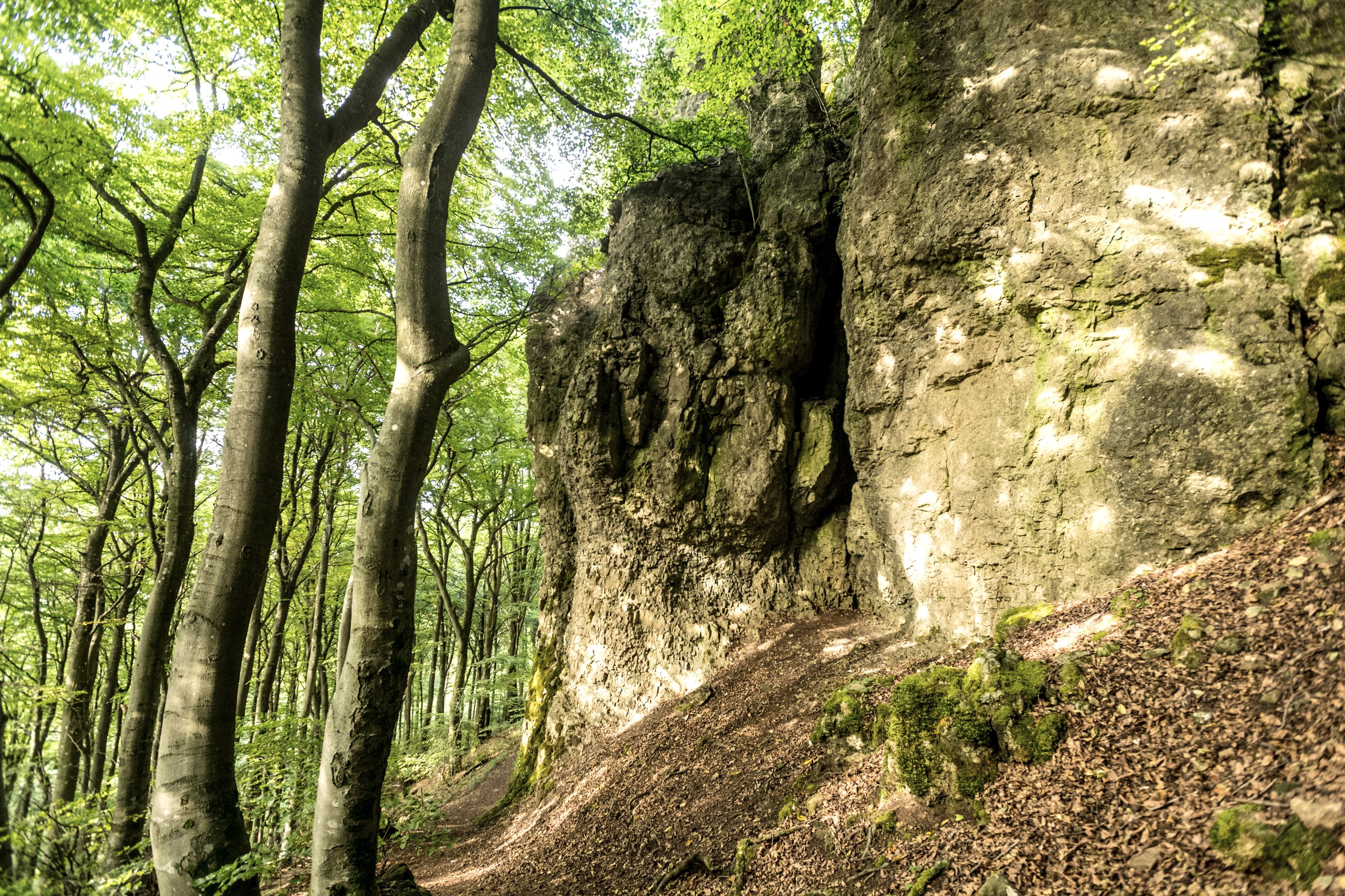 De gelegenheid om over een kalkrif te wandelen, krijg je niet elke dag. De dolomietrotsen zijn het symbool van Gerolstein. Aan de rand van het Munterley-plateau ligt de Buchenlochgrot. Ruim 1,8 miljoen jaar geleden ontstaan in het gesteente is het gewelf met een lengte