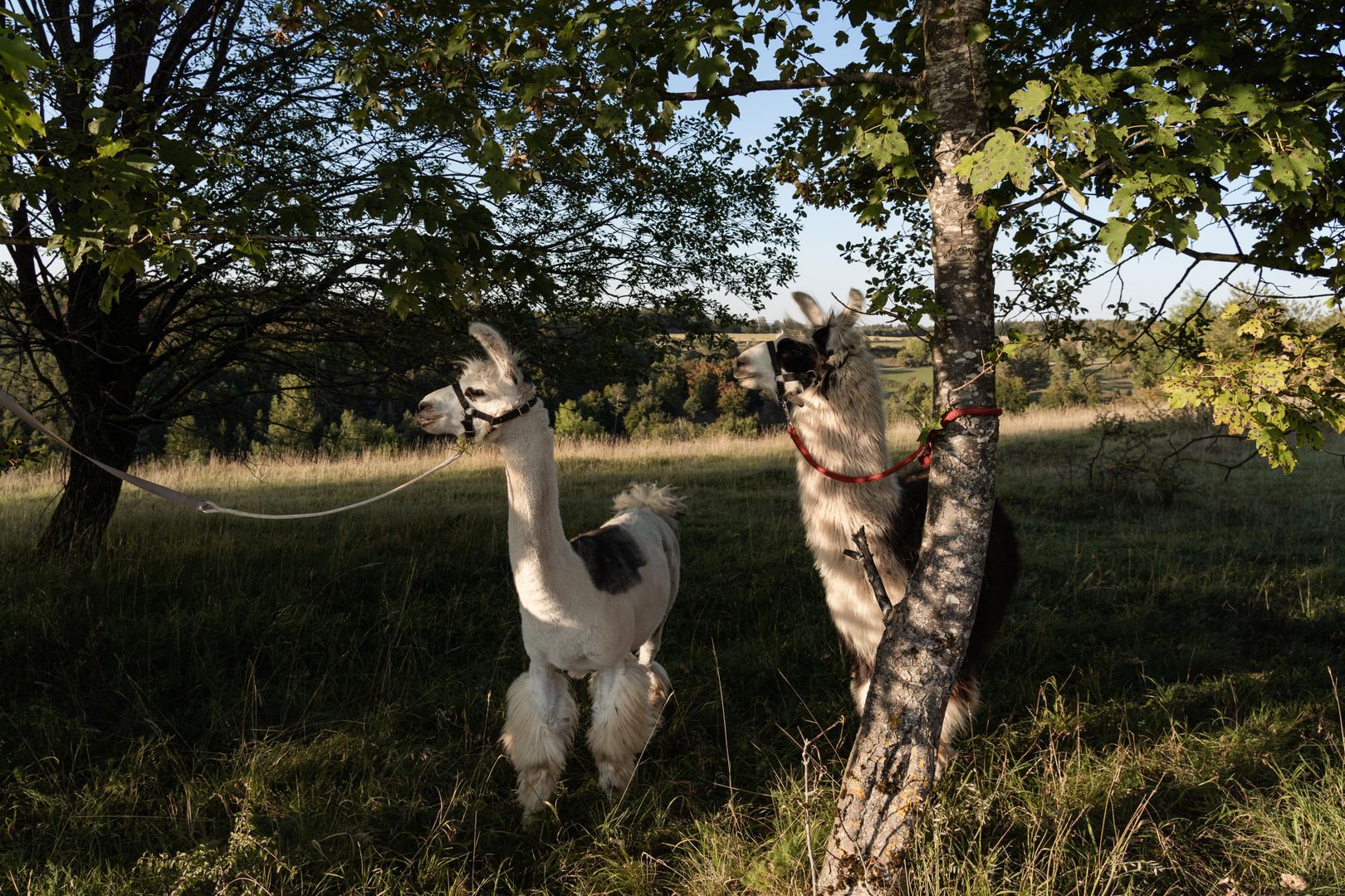 Terug in de wei moeten we afscheid nemen van onze trouwe metgezellen, de lama's.
