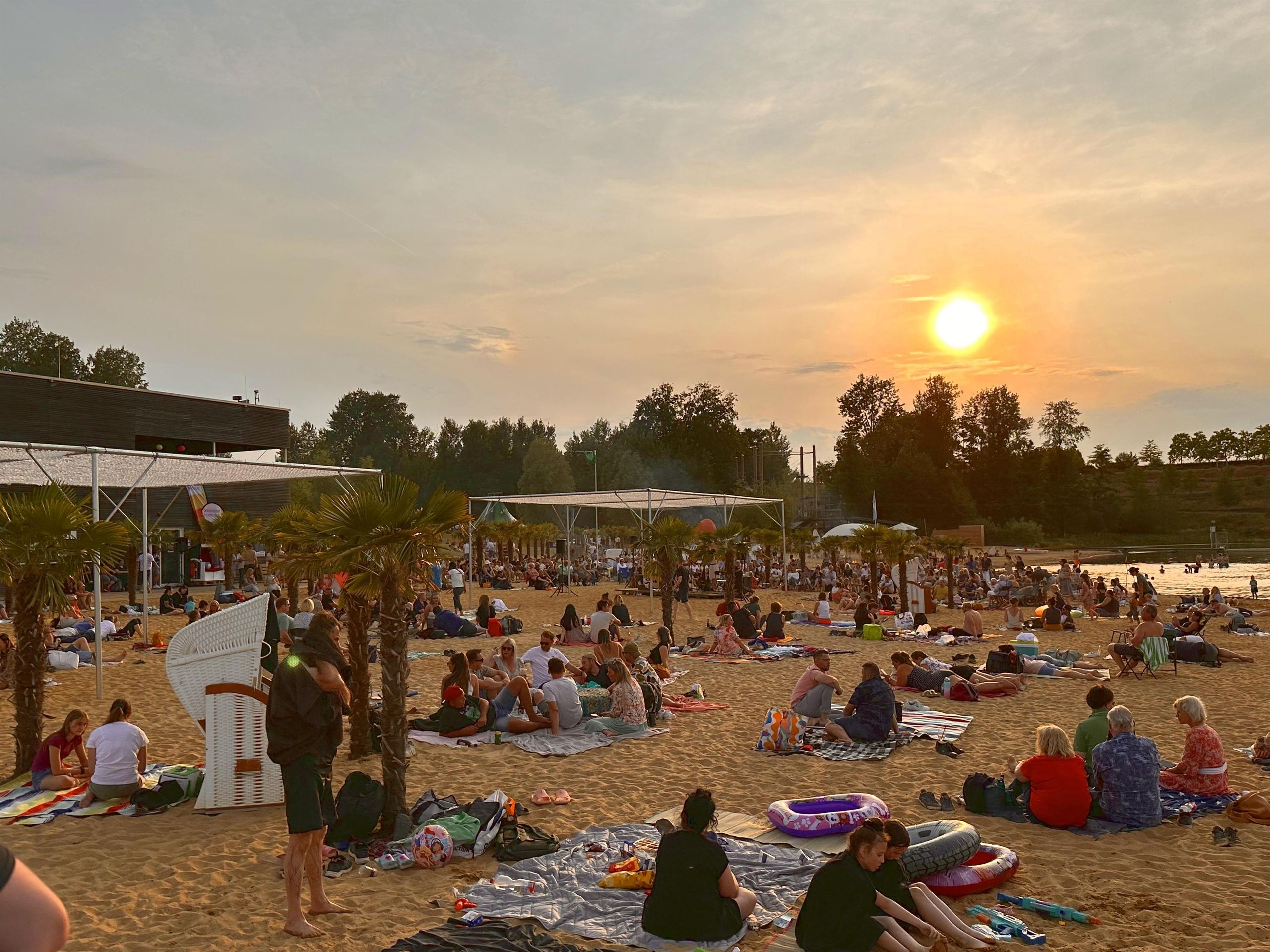 Beleef de Lange Zomeravond in Seepark Zülpich en geniet van de zonsondergang met livemuziek en een gezellige sfeer tussen de palmbomen.