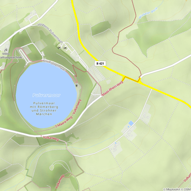 In het gastenhuis is alles onder één dak verenigd: receptie, kiosk, snackbar, verkoop van broodjes, toeristeninformatie en WLAN-hotspot. Daarnaast is er een gezellig café met snacks. Binnen nodigen verwarmde zitplaatsen uit tot verpozen, terwijl er buiten een groot terras beschikbaar is. De drankkaart biedt allerlei Eifelse specialiteiten, terwijl op het menu hartige salades – op verzoek met vleesbeleg – koffie en taarten van de lokale bakker te vinden zijn.