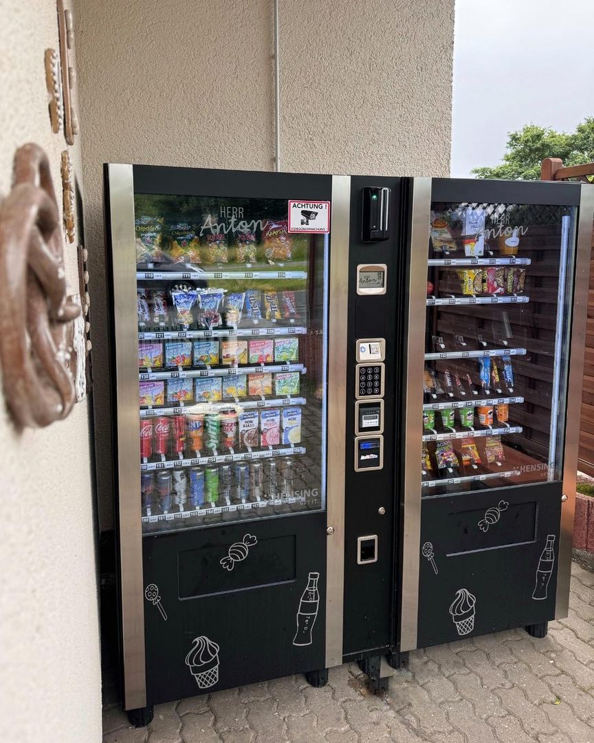 De snackautomaat voor het Knusperhäuschen is dag en nacht geopend en biedt koude dranken, snacks, eieren en aardappelen uit de regio en nog veel meer.