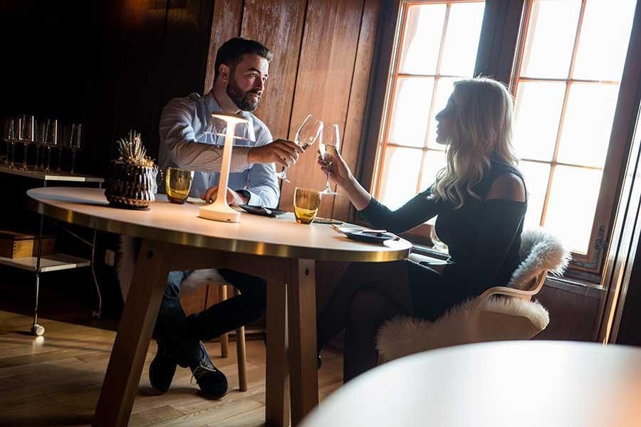 Terwijl het veel grotere, lichtovergoten hoofdrestaurant ernaast fantasierijke regionale gerechten à la carte serveert, biedt het fine dining-gedeelte uitsluitend een kosmopolitisch menu van maximaal acht gangen, dat uiteraard desgewenst kan worden ingekort. Ook hier ligt de nadruk op regionale producten en lokale smaken met krachtige aroma's, maar deze worden aangevuld met verder gereisde gerechten en zuidelijke mediterrane invloeden. Om op de clou vooruit te lopen: we waren opgewonden. Door de ongekunstelde soevereiniteit waarmee alles wordt uitgedacht en gekookt, door de sterke inhoud die in elk detail zit, door de aromarijke, ongecompliceerde opstellingen waarbij het goede product en de smaak altijd centraal staan.