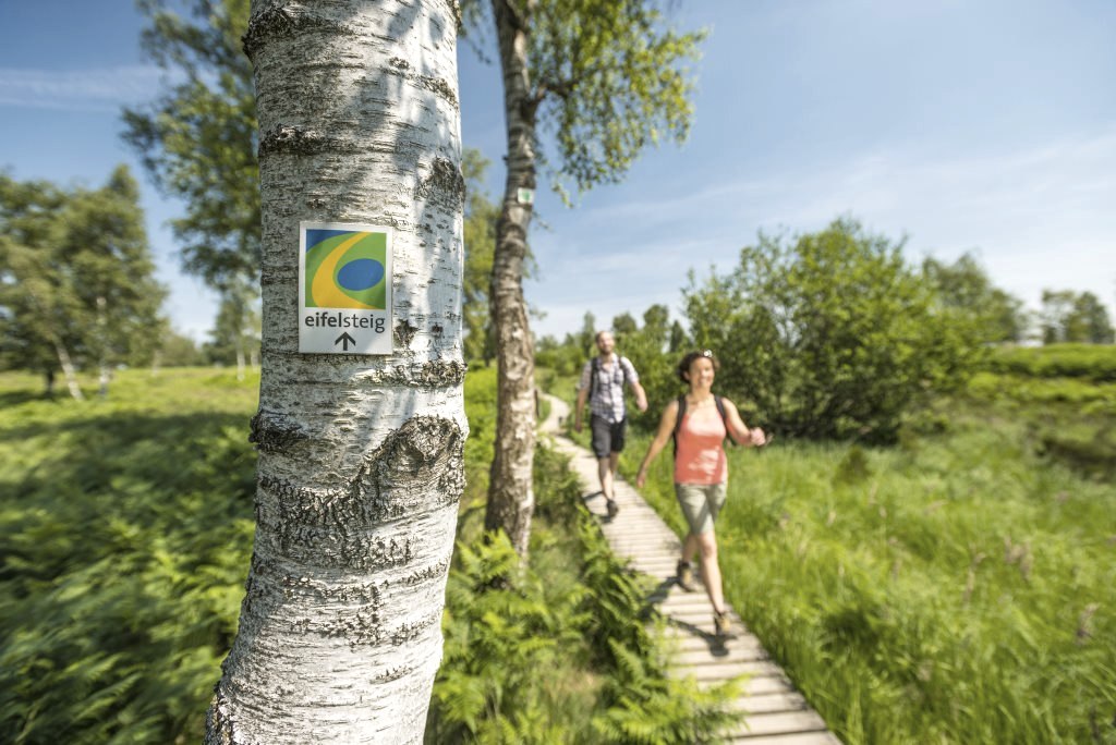 Elke dag is anders, altijd nieuwe indrukken, uitzichten en ervaringen. Vind je eigen ritme, wees één met de natuur, loop in de voetsporen van de elementen water, lucht, vuur en aarde. Het is een groot avontuur om de Eifelsteig met zijn 15 etappes in één keer te wandelen. Als beloning wachten onvergetelijke momenten. Doorkruis het vlakke noorden bij Aken over de Hoge Venen, langs de imposante stuwmeren en in het Nationaal Park Eifel met zijn ongerepte gemengde beukenbossen en het open grasland van de Dreiborn hoogvlakte. Kronkelende paden leiden hoger en hoger naar het Eifeluitzichtpunt Steling bij Monschau.