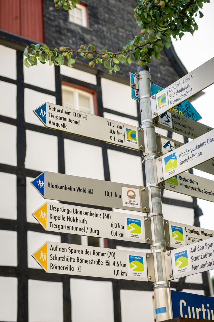 De bewegwijzering en markering van de partnerroutes is analoog aan de Eifelsteig.
