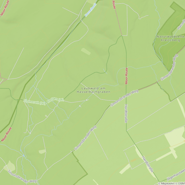 Wie langs de Hasselbachgraben wandelt, ziet een beekbed dat zich door bossen en weilanden slingert. De greppel is echter door mensen aangelegd en verbindt technische waterafvoer met een ontwerp dat zich in het landschap voegt.