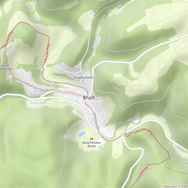 Toen Bruch in 1805 werd uitgeroepen tot een onafhankelijke parochie, was het logisch om een bedehuis te bouwen. Er was weliswaar een slotkapel in Bruch, maar die was privébezit. Er was geen parochiekapel. In een tijd waarin de kerkbouw in heel Duitsland tot stilstand was gekomen, begonnen de inwoners van Bruch in 1807 met de bouw van hun parochiekerk. De kerk werd gebouwd door de inwoners van Bruch en hun eigen bezit, zoals de inventaris van 28 oktober 1823 trots vermeldt. De parochie koos een rotsachtige heuvel onder de Galgenberg voor haar kerk. Sindsdien torent de kerk van St Roch uit boven een groot deel van het dorp. De kerk is een eenvoudig halgebouw waarvan het metselwerk grotendeels uit breuksteen bestaat. Er waren twee belangrijke redenen voor de uitbreiding tussen 1872 en 1874. Ten eerste was de kerk te klein geworden door de toenemende bevolking en ten tweede was de westelijke puntgevel van de kerk vervallen. Het eenvoudige halgebouw werd vergroot tot een lengte van ongeveer 31,30 meter en uitgebreid met een hoge, spitse klokkentoren aan de voorkant. Het interieur van de kerk kon meer bezoekers ontvangen in het verlengde schip, de zijkapel en de galerij. Op het punt waar de kerk werd uitgebreid, bevindt zich een zandsteen aan de buitenkant van de plint. Het draagt de naam van een van de eerste steengoed pottenbakkers die vanuit het Westerwald naar Bruch kwam. Voor de kerk staan symbolen van de aardewerkhandel op een andere zandsteen. Deze stenen herinneren aan de bloeiende aardewerkhandel in Bruch in die tijd.