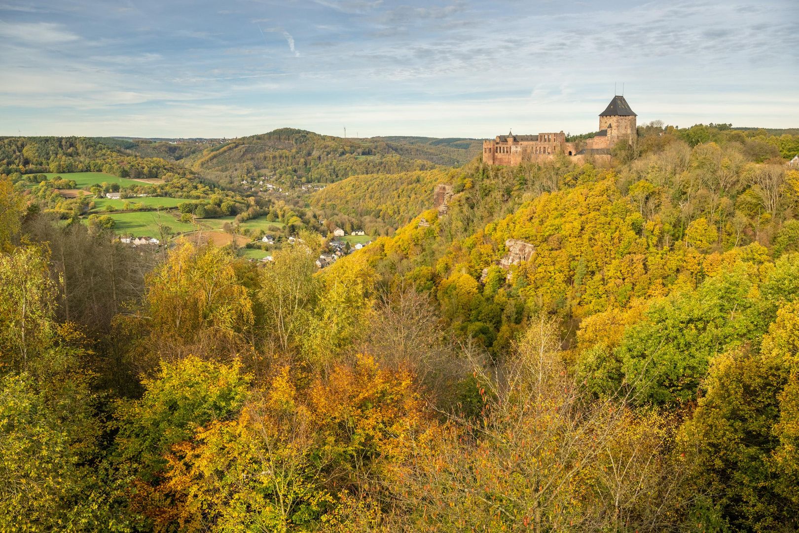 Vanaf het grote uitzichtterras van jeugdherberg Nideggen kunnen bezoekers genieten van een uniek uitzicht op het weidse landschap van de Rureifel. De omgeving wordt gekenmerkt door machtige rode zandsteenrotsen, groene beboste heuvels, vruchtbare weiden en kleine dorpjes ingebed in de natuur. Nideggen wordt niet voor niets "De poort naar de Eifel" genoemd.