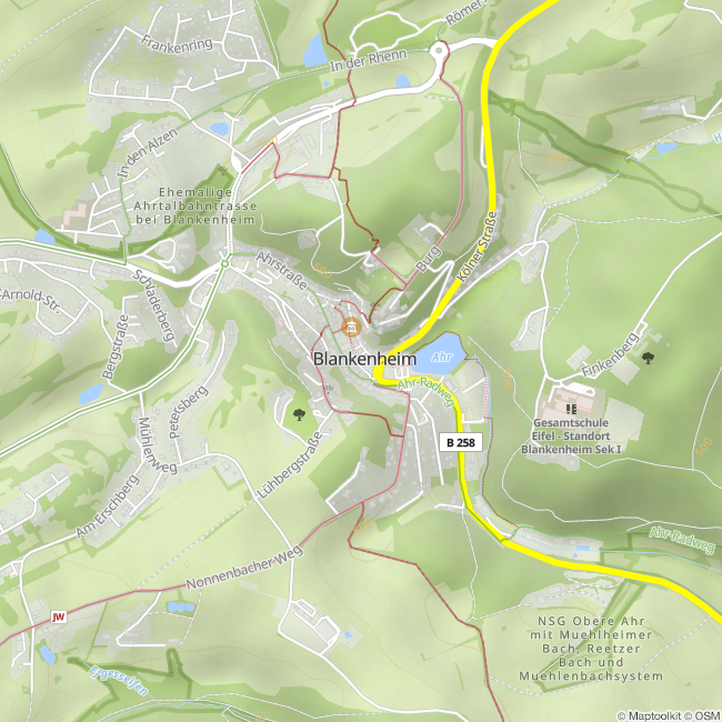 Vanaf deze locatie (540 meter boven zeeniveau) heb je bij mooi weer een prachtig uitzicht over het landschap van de Ahr en de Eifel. Het uitzicht gaat over de Aremberg met zijn afgeplatte top (623 meter boven zeeniveau) naar de Nürburg (678 meter boven zeeniveau) en de Hohe Acht (747 meter boven zeeniveau).