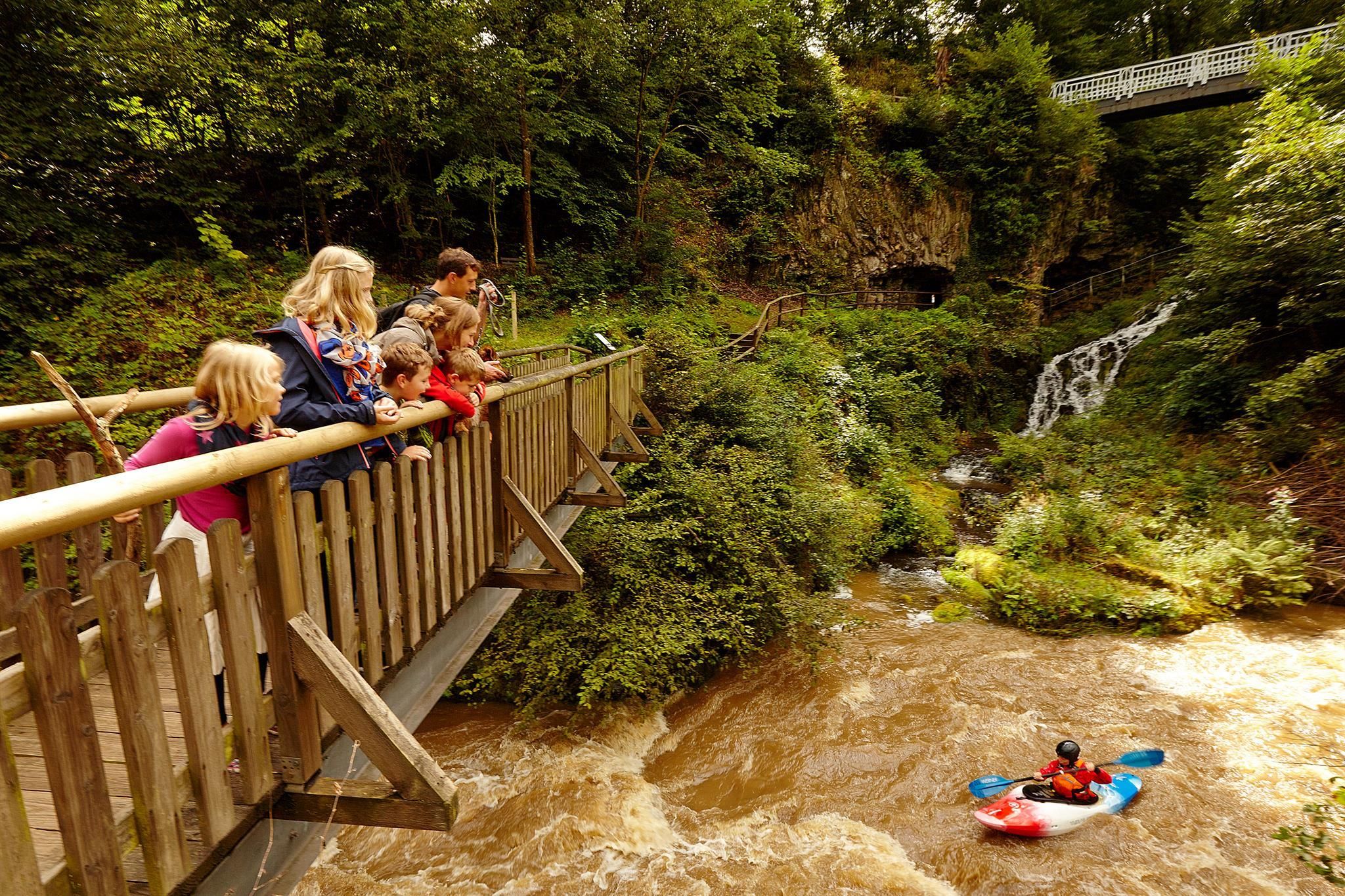 De betoverende Elfengrot bij Bad Bertrich is vooral voor kleine GesundLand-bezoekers een geliefde bestemming, want als men hier je ogen sluit komen fantastische sprookjes tot leven. Droom weg bij legendarische verhalen en oude legendes bij een bezoek aan de grot. De grot ligt direct aan de HeimatSpur wandeling: „Spazierweg Elfengrotte", die 2,4 km lang en ook voor kinderen geschikt is. Vlak ernaast ruist de Elbesbachwaterval. Deze plaats dankt zijn bijnaam "Kaasgrot" aan de vorm van de stenen, die doen denken aan ronde kazen. De grot werd vele duizenden jaren geleden gevormd door gloeiend hete basaltlava die uit de hoge vulkanen naar het Üssbachdal stroomde en daar een uniek landschap vormde. Tijdens het afkoelen stolde de basaltlava tot zuilen met horizontale spleten. Door de eeuwen heen heeft de verwering de vorm van gestapelde kazen gevormd, die de Elfengrot zijn bijzondere uitstraling geven.