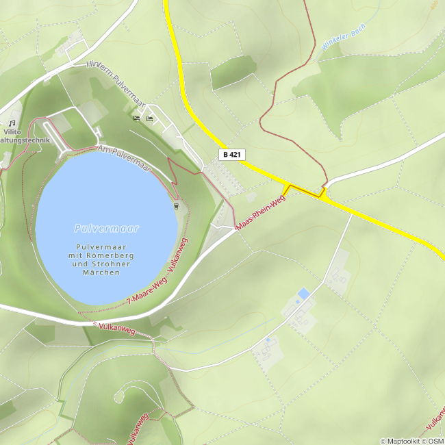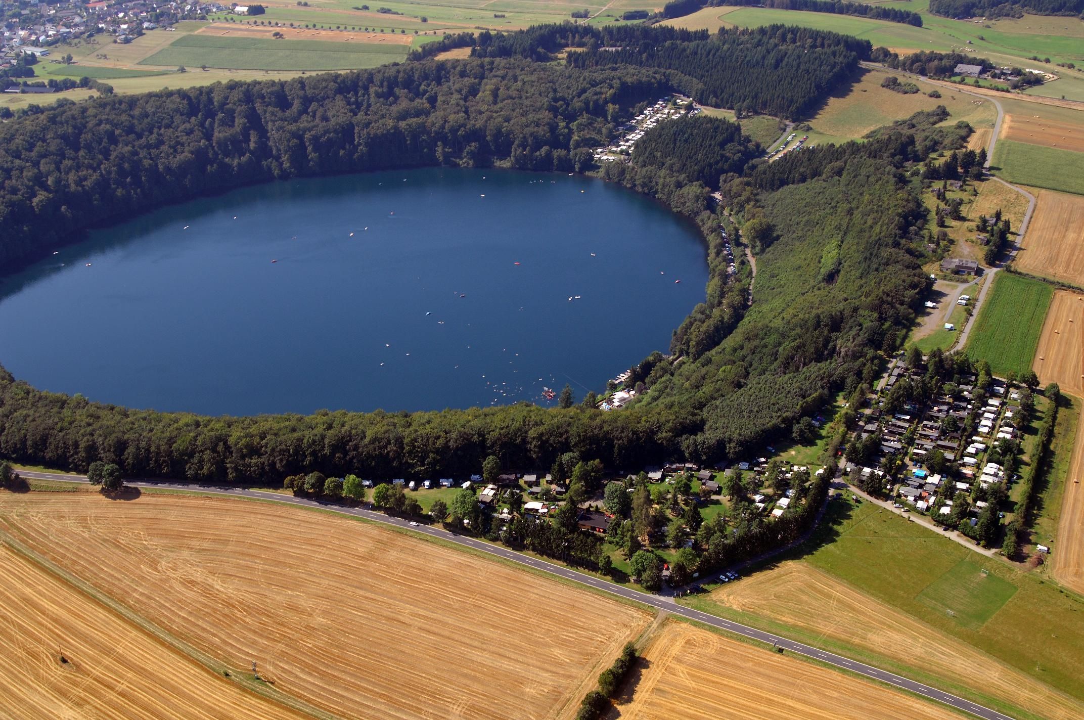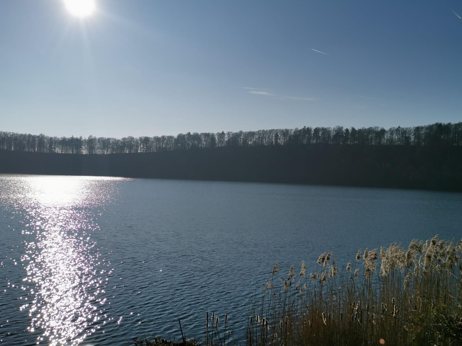 Het vakantiedorp Pulvermaar is aantrekkelijk gelegen op de kraterwand van het Pulvermaar - het grootste "oog van de Eifel".