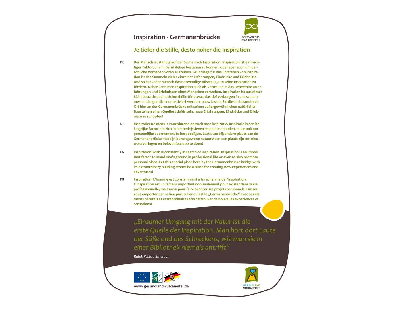 De Germanenbrücke is 'Achtsamkeits' Punt 4 en staat voor inspiratie. Ter plaatse vindt u een plaquette met een gedetailleerde uitleg.