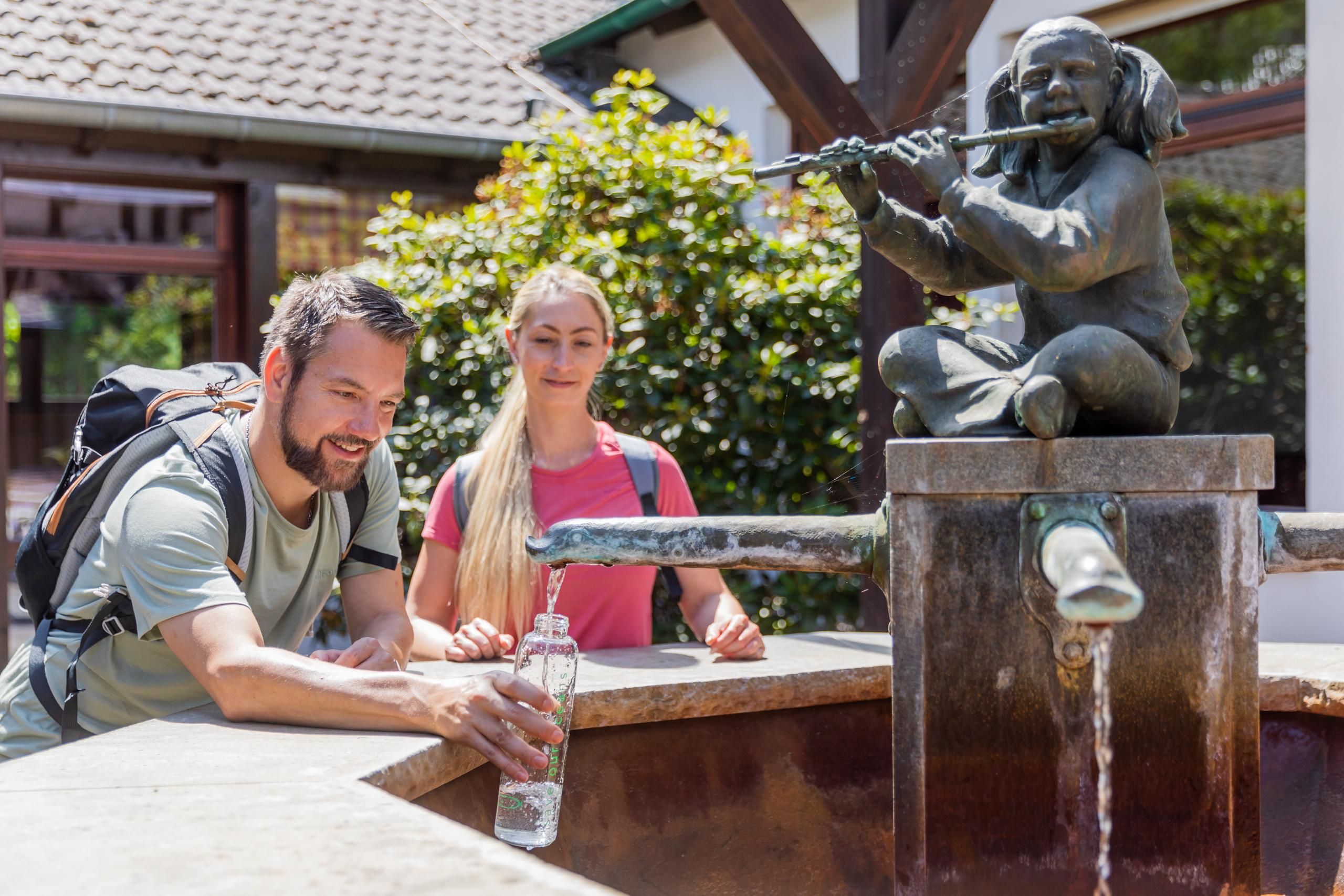 De Romeinen waren zich al bewust van de gezondheidsbevorderende eigenschappen van de geneeskrachtige steenbron en de verkwikkende werking van het ijzerrijke water. De Heilsteinquelle-bron behoort tot de zeldzame groep "alkalische zure bronnen", waartoe ook de Fachinger-bron behoort. Met een bijzonder laag zoutgehalte en een relatief hoog magnesiumgehalte onderscheidt het water van de Heilsteinquelle zich van andere "alkalisch zure" wateren. De Heilsteinquelle-bron bevindt zich ver weg in het bos in een bronhuis waar het kostbare bronwater van 52 meter diepte wordt opgepompt en naar de Heilsteinbrunnen-bron wordt geleid. De put, die pas in 2003 werd gebouwd, maakt het water toegankelijk voor iedereen. Wil je proeven? De fontein is vrij toegankelijk op de binnenplaats van het Heilsteinhaus. De ingang is aan de achterkant van het gebouw. Het heldere geneeskrachtige water moet geproefd worden!