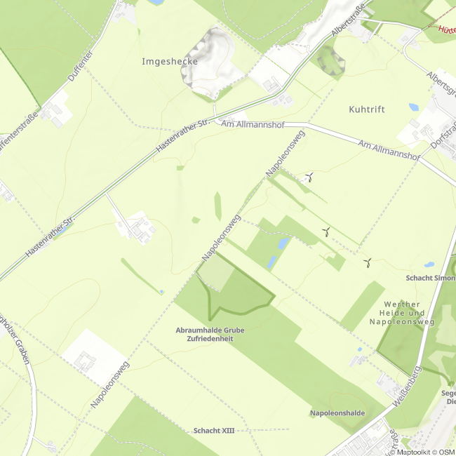 De paardenbaan verbond de schachten van de “Tevredenheid” met de verwerking van de “Albert mijn”. Hier – en niet zoals oorspronkelijk gepland op het terrein van de “Tevredenheid” – waren de installaties voor ertsverwerking geïnstalleerd. Op de plaats van dit station buigt de oorspronkelijke route van het Napoleonspad af, die toen nog niet doorlopend naar de verwerking van de “Albert mijn” leidde, maar in plaats daarvan hier direct in de huidige Hastenratherstraat uitmondde.