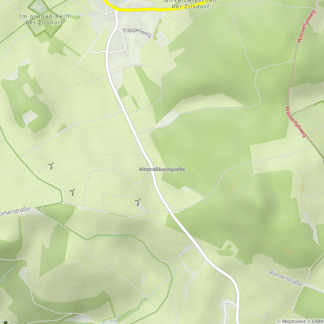 B421 richting Zilsdorf, in Zilsdorf afslaan de Talstraße in, de bron bevindt zich links tegenover de windmolens.