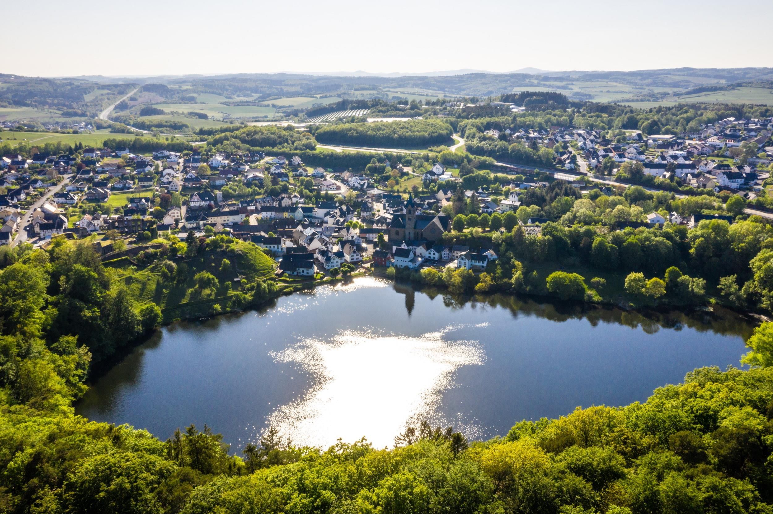 Het gelijknamige charmante stadje Ulmen ligt direct aan de Maar. Hier kunnen gasten stoppen bij verschillende cafés en restaurants en genieten van een goede kop koffie of een heerlijke maaltijd. Parkeren: Bezoekers kunnen het beste parkeren op het Oude Postkantoorplein of de Markt in Ulmen. Beide plaatsen zijn centraal gelegen in de stad, zodat het slechts een korte wandeling is naar de oever van het Ulmener Maar.
