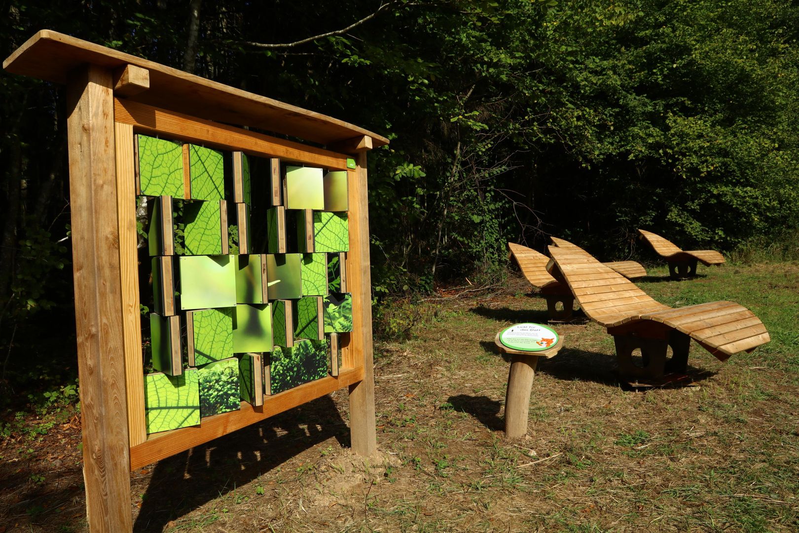 De 8 stations langs de belevingsronde motiveren kleine en grote bezoekers om te ontdekken, leren en spelen in het bos. Hier leert men interessante en nuttige feiten over de vele verbindingen tussen het bos en ons mensen.