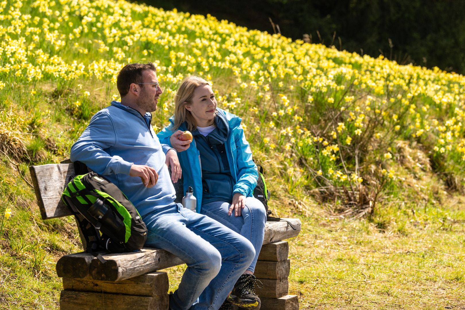 Waar de naam van de wandeling vandaan komt? In de lente toveren duizenden gele en witte narcissen de weides langs de wandelroute om tot een kleurrijke, geurende bloemenzee. Daarom kunnen wij een wandeling over de ‘Narzissenroute’ met name in het voorjaar – om precies te zijn vanaf begin april tot begin mei – aanbevelen. Een goede mogelijkheid om vóór of na het wandelen een welverdiende pauze in te lassen, is bistro ‘Alte Molkerei’, vlakbij Nationalpark-Tor Monschau-Höfen.